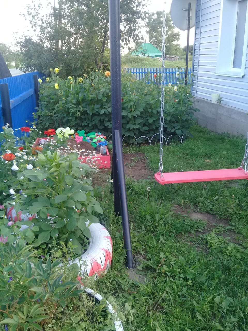 Есть качели для детей.