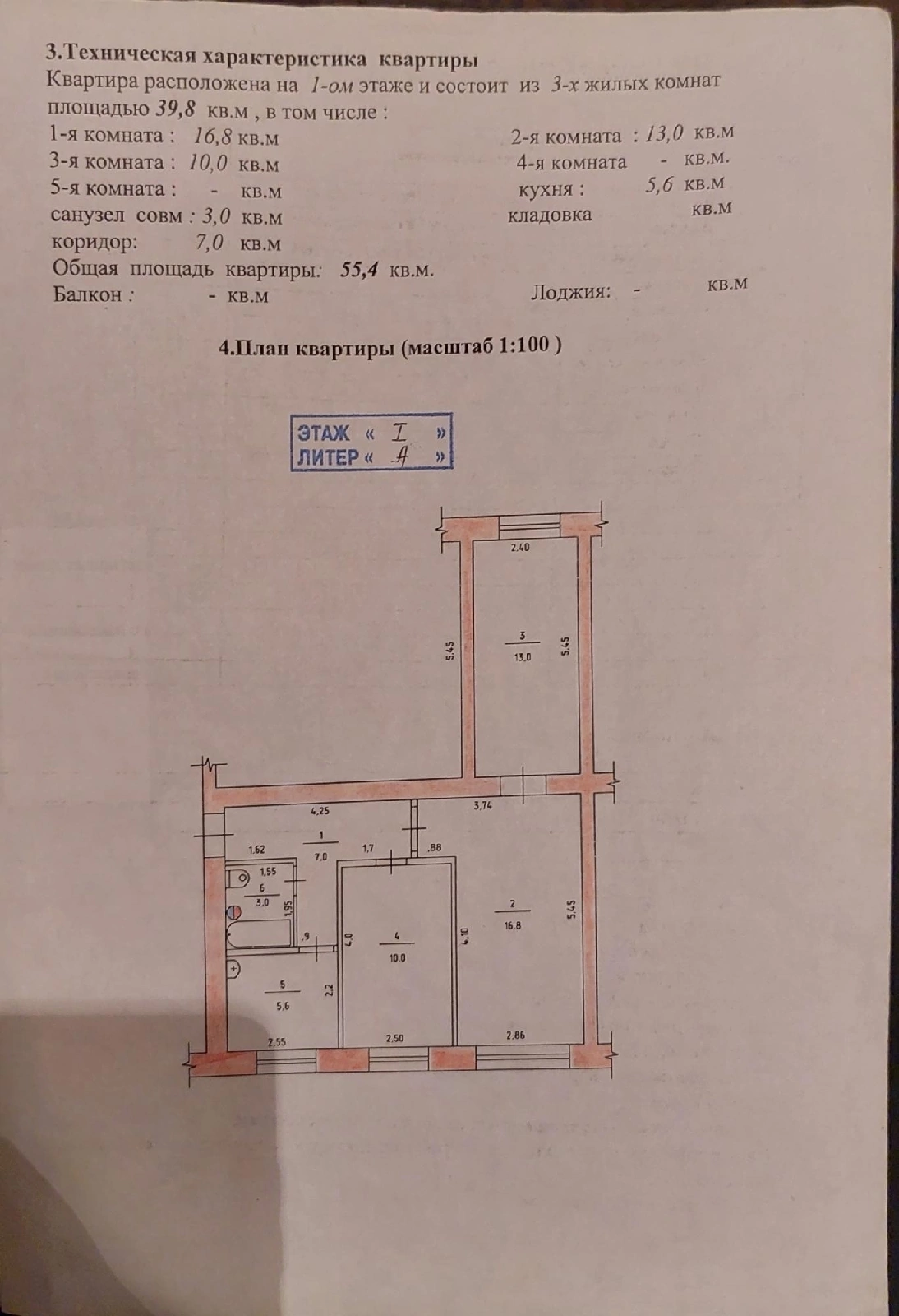 Общая площадь 55.4 м2