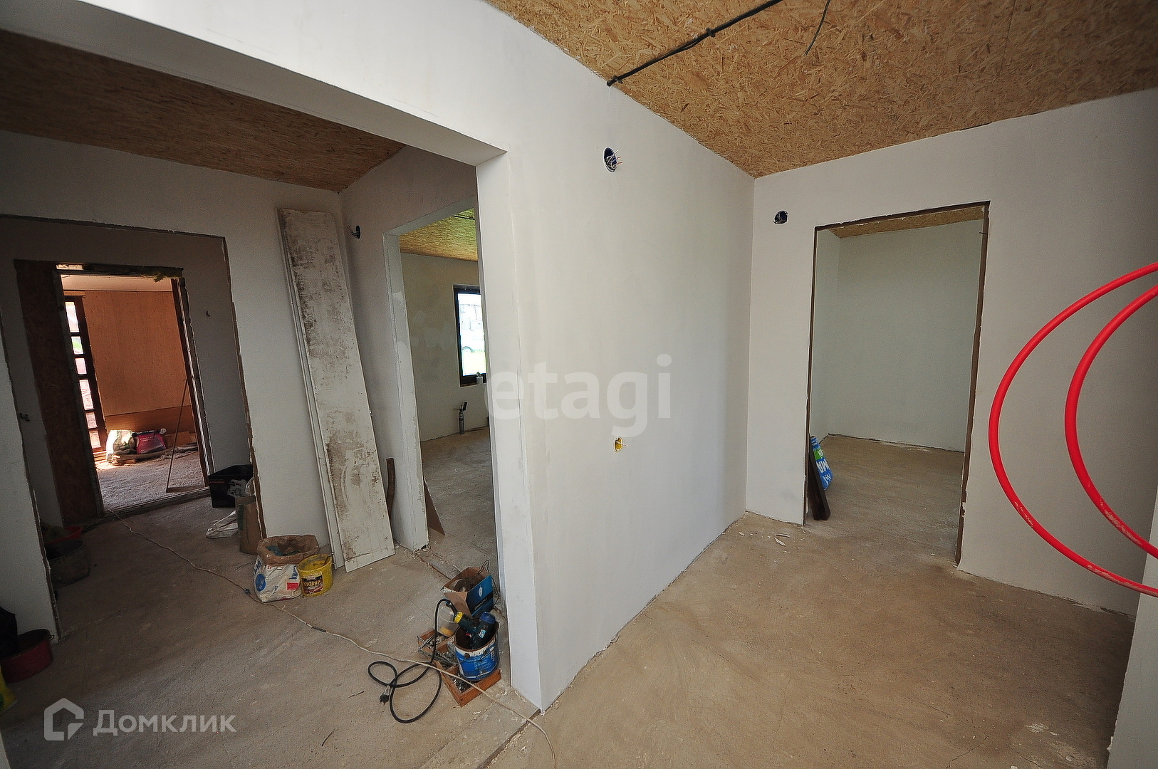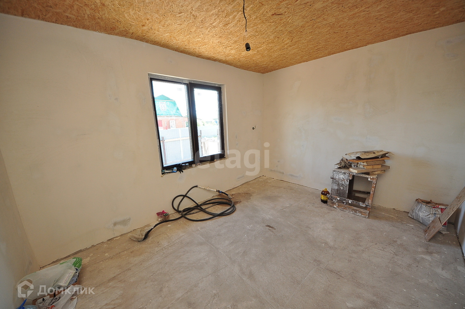 Дом каркасный, представлен в улучшенной черновой отделке . 3 комнаты, 2 спальни, гостиная. ванная и кухня. Просторный гараж на 2 машины, выход из гаража прямо в дом.
