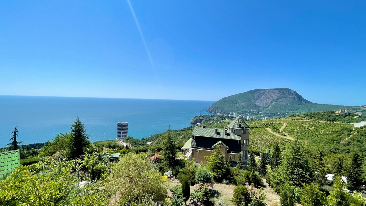 С просторных террас Виллы открываются по истине непревзойдённые виды на визитные карточки Крыма: мыс Плака и Дворец Княгини Гагариной, гора Аю-Даг, она же Медведь-гора, и парк-памятник садово-паркового искусства общегосударственного значения - Утёс-Карасан.