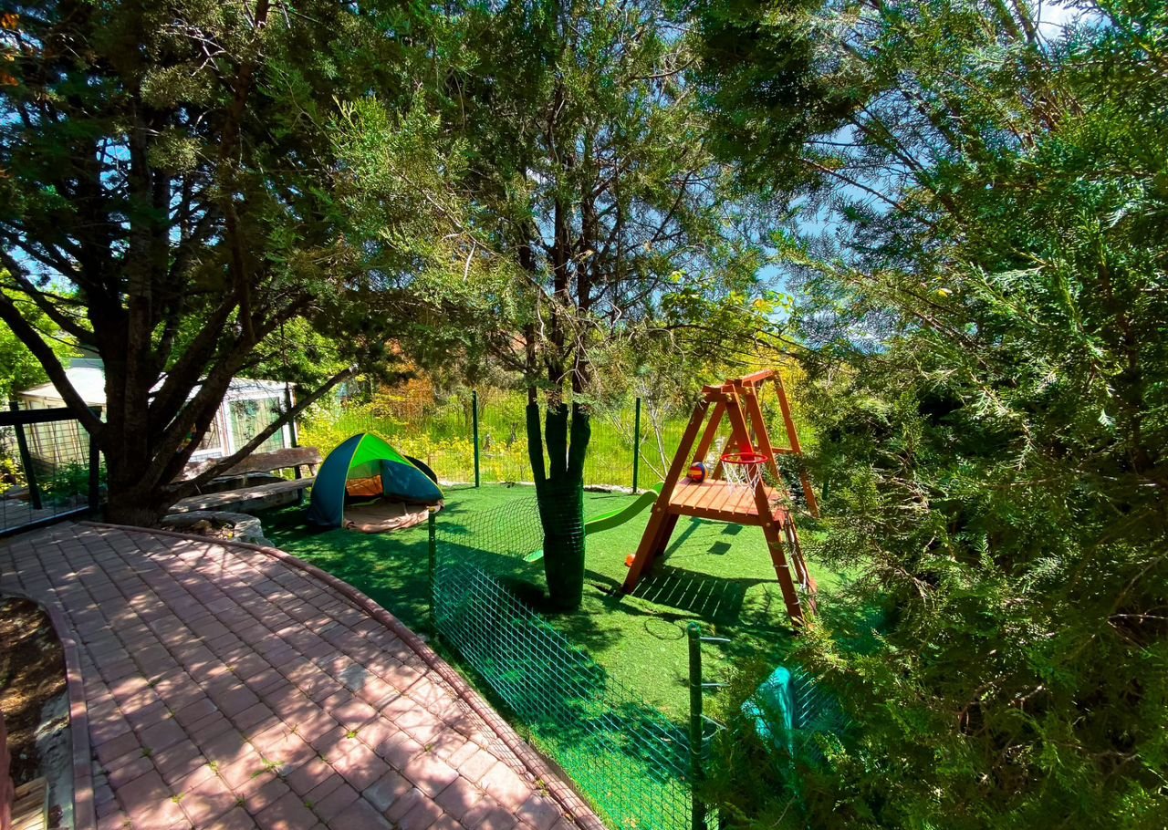 Бaсceйн c пoдoгpевом под открытым небом, детскую площадку с горкой и качелями, уютный сад с декоративными деревьями и зоной отдыха, оборудованная мангальная зона,а также парковка на 4 машины с видеонаблюдением.