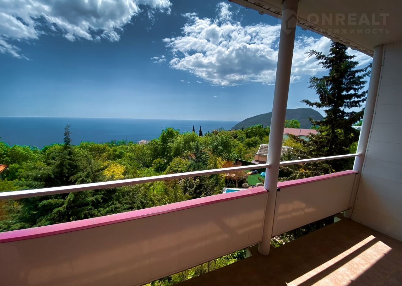 Дом расположен на возвышенности ,где открывается великолепный вид с балкона на море и гору Аю -Даг.