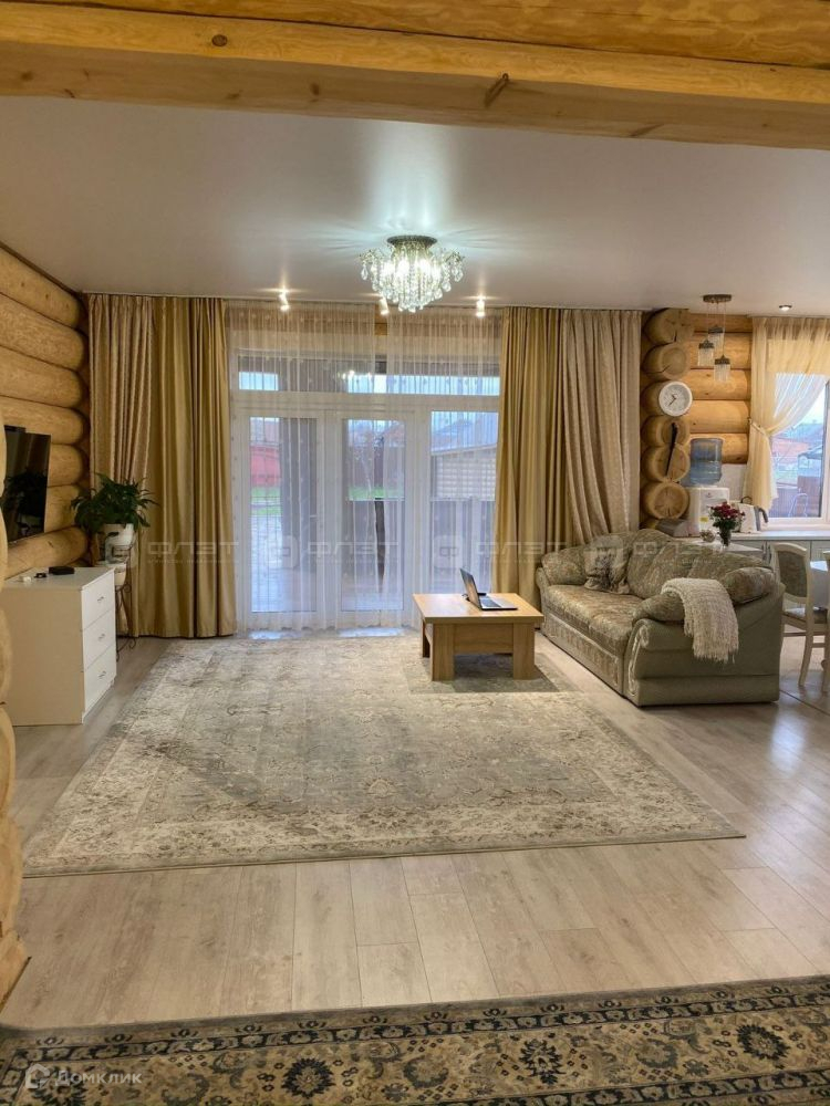 Объект №69794  Мечта каждого ценителя загородной жизни! Здесь можно с наслаждением пережить любые волны пандемии и прочих ПРОБЛЕМ! Дом 160 м2 на участке 16 соток из рубленного бревна, для комфортного проживания, без вложений. Ручная рубка, эксклюзив. В доме 3 большие спальни по 20 кв.м каждая, просторная гостиная-кухня около 40кв.м.раздельный санузел и ванная комната, бойлерная с системой очистки воды и прачечная со встроенной техникой: духовка, посудомоечная машина, газовая плита, Потолки в доме экологически чистые (тканевые, гипоаллергенные), огромная прилегающая открытая терраса с полом из палубных досок. Строили для себя, поэтому все из высококачественных материалов. Все коммуникации продуманы: теплые полы везде, управление системой отопления и видеонаблюдение по смартфону! Окна тройной стеклопакет+панорамный выход на террасу. На территории участка большая баня со всеми условиями, большая жилая беседка с водопроводом и водоотводом летним. Во дворе ландшафтный дизайн. Кварплата 3-4 тыс Хорошие соседи На участке высажено около 50 деревьев в большинстве плодовые( яблони, груши, черешни, вишни, малина, смородина, облепиха,черноплодка и др) До аэропорта 15 минут Автоматические ворота, большая и удобная зона парковки. 20 минут до города по новой асфальтированной дороге.