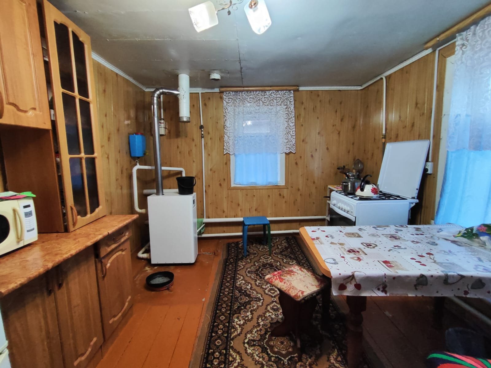 Проведено индивидуальное газовое отопление. Есть канализация.