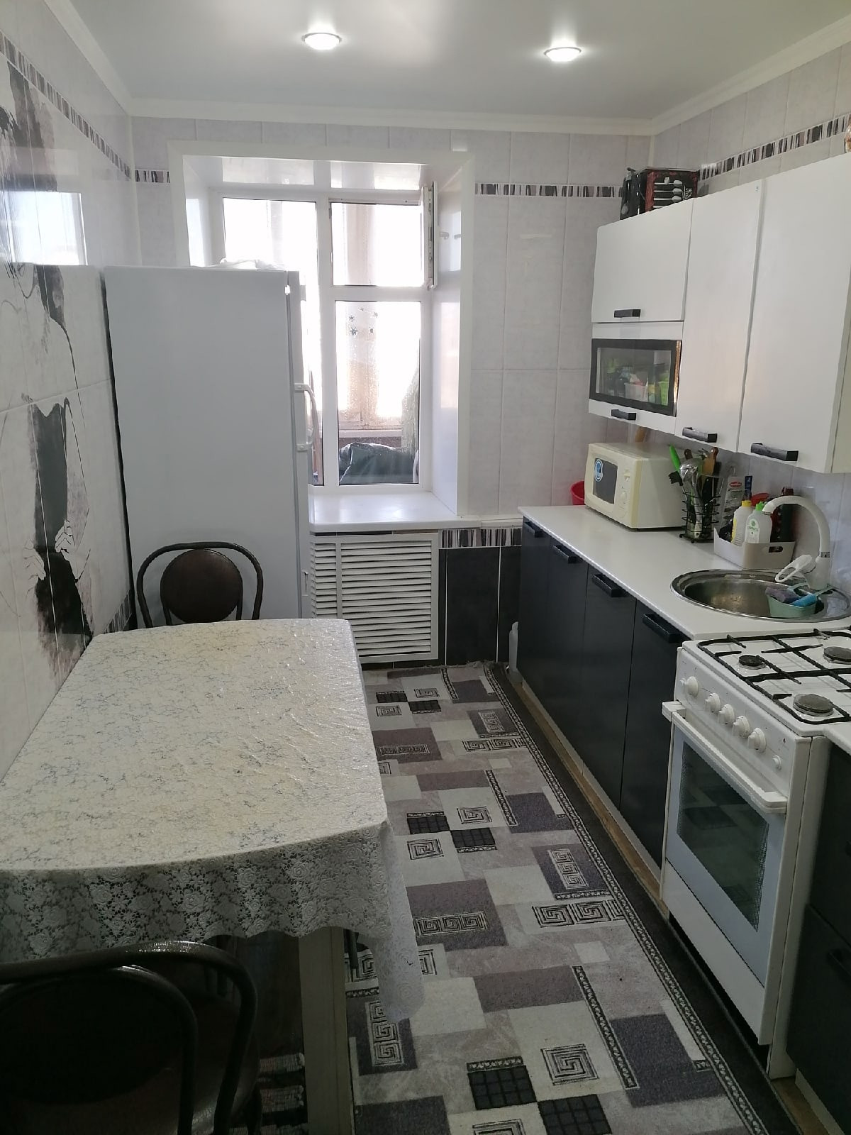 Общая площадь квартиры 51,4 кв.м., Квартира чистая, аккуратная, пластиковые окна; на полу линолеум, стены обклеены дорогими обоями, потолки натяжные. В квартире остается кухонный гарнитур, газовая плита, шкаф, диван, бойлер для горячей воды, мебель.Застекленный балкон на всю длину квартиры (утепленный).Заменена проводка на новую. Счетчики: газ, вода, свет. Отличное местоположение дома. Рядом школа, детские сады в шаговой доступности, СОК, магазины, рынок