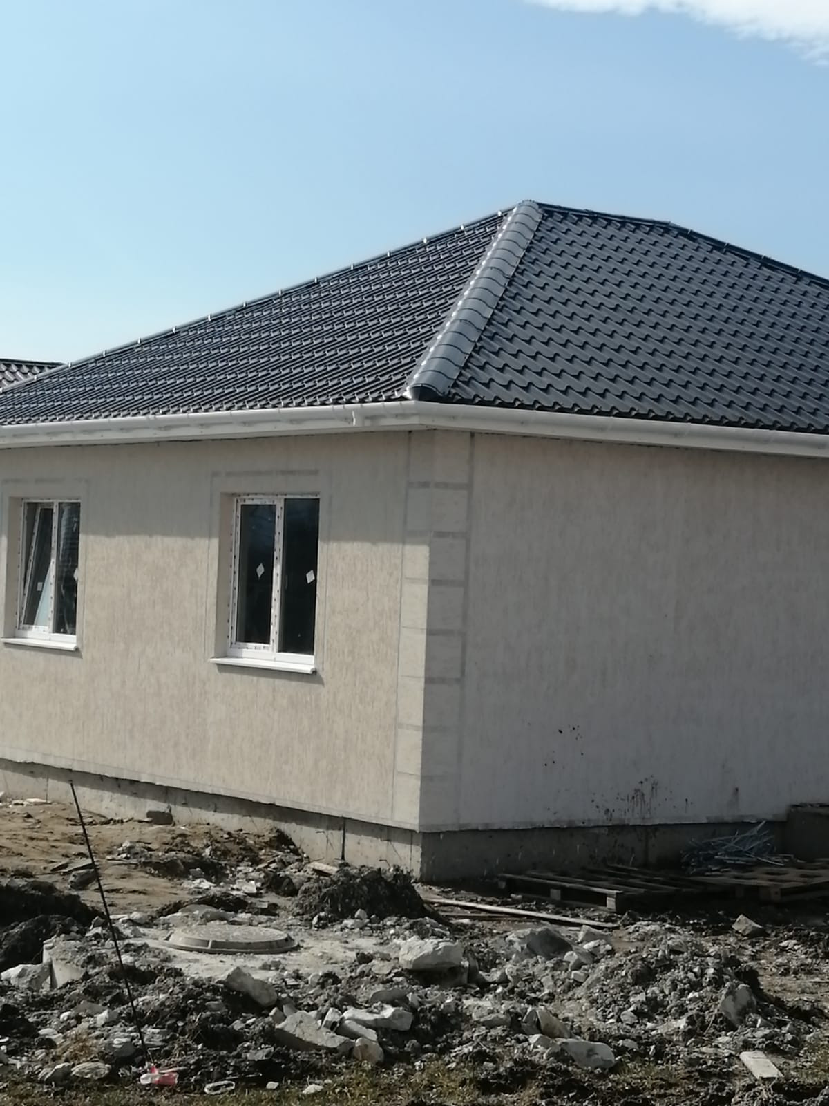 Новый дом в отличном районе Новороссийска. Построен из качественных материалов. Коммуникации: свет, скважина, септик. В доме две просторные комнаты, кухня - столовая, с/у.