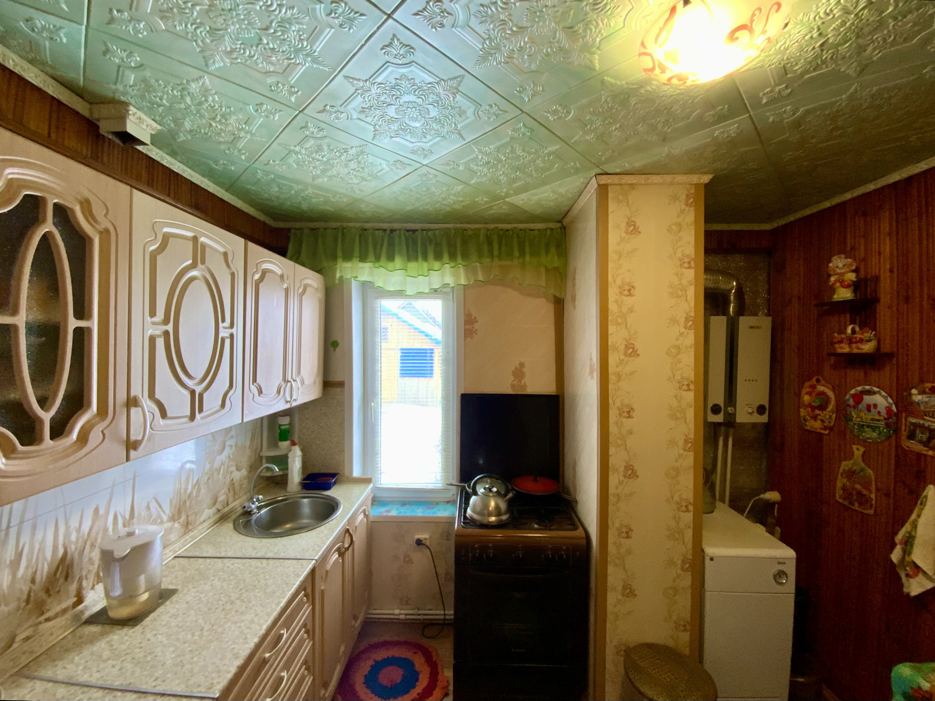Отопление от газового котла, горячая вода две газовые колонки, отдельно на кухню и ванную, водопровод центральный, канализация септик.