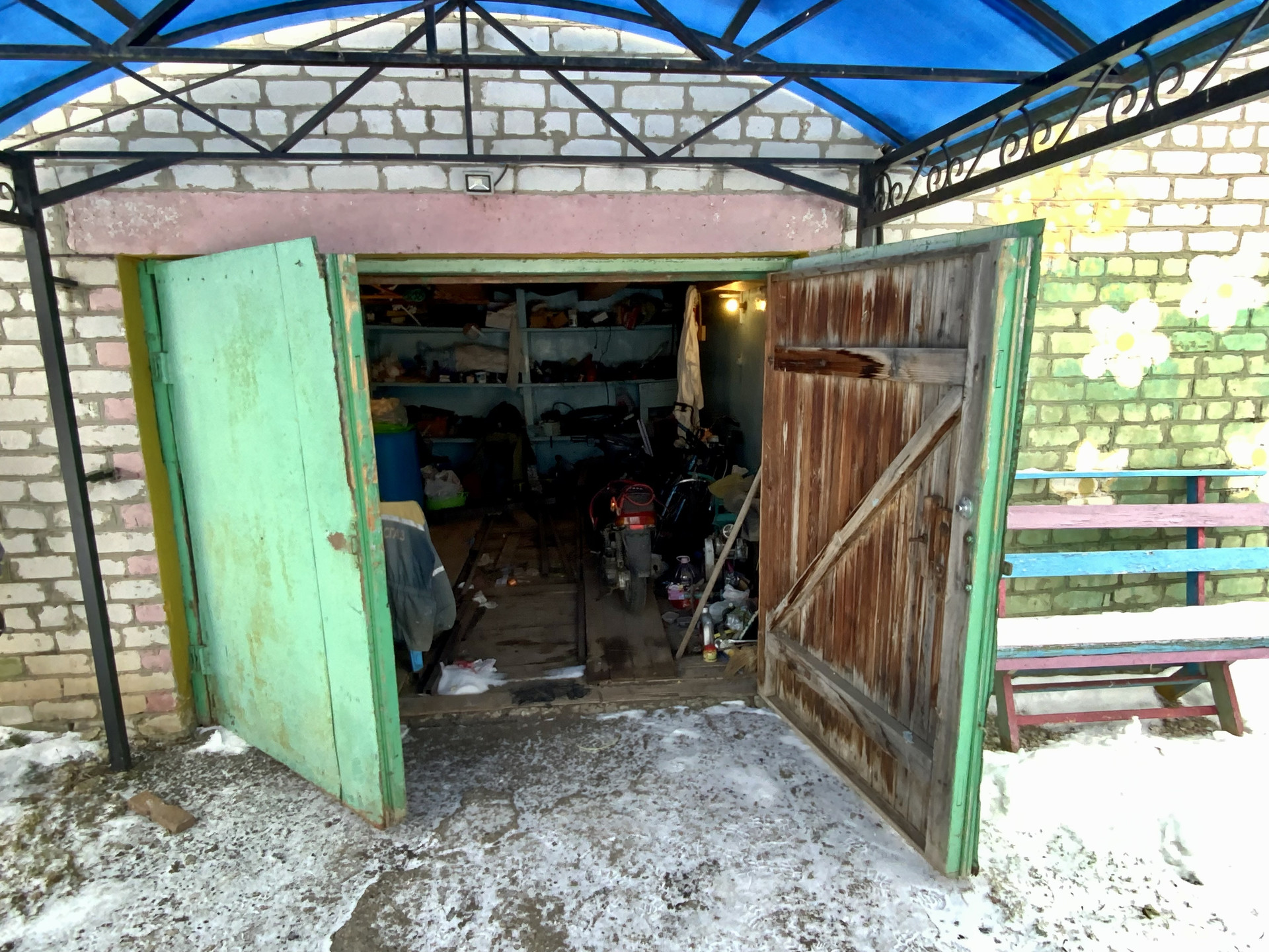 Участок 48 соток, 9 соток под домом и 39 отдельно через дорогу. На участке рядом с домом под одной крышей гараж со смотровой ямой, погреб над ним сарай и ещё один сарай, всё из кирпича на фундаменте. Также имеется закрытая беседка, ещё несколько хозпостроек и баня с бассейном и комнатой отдыха на втором этаже.
