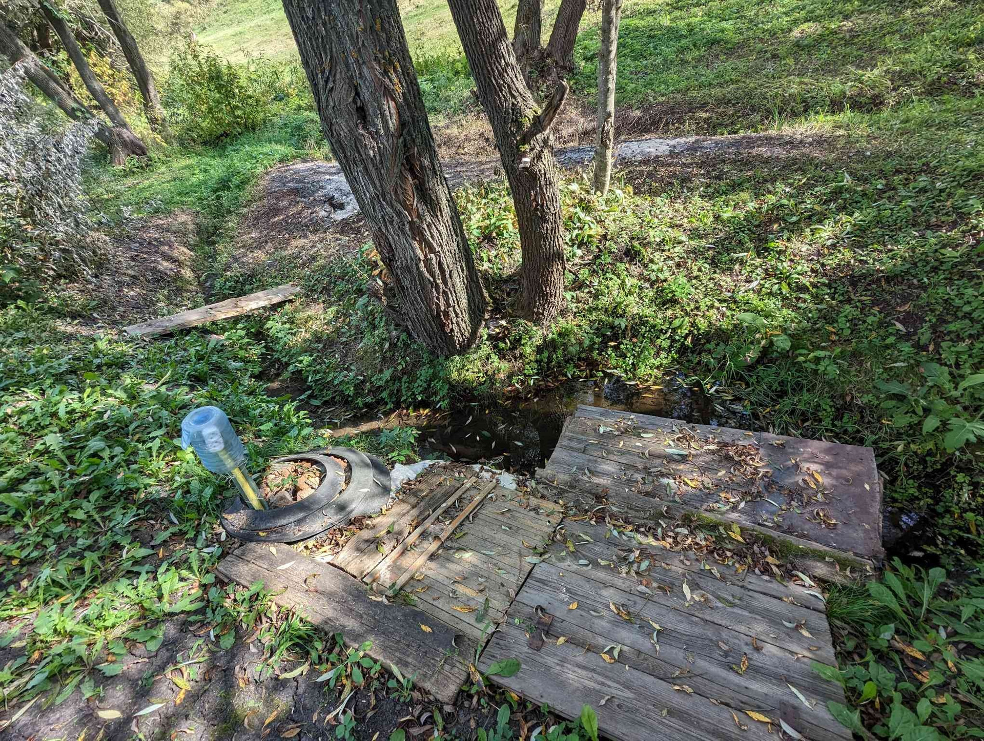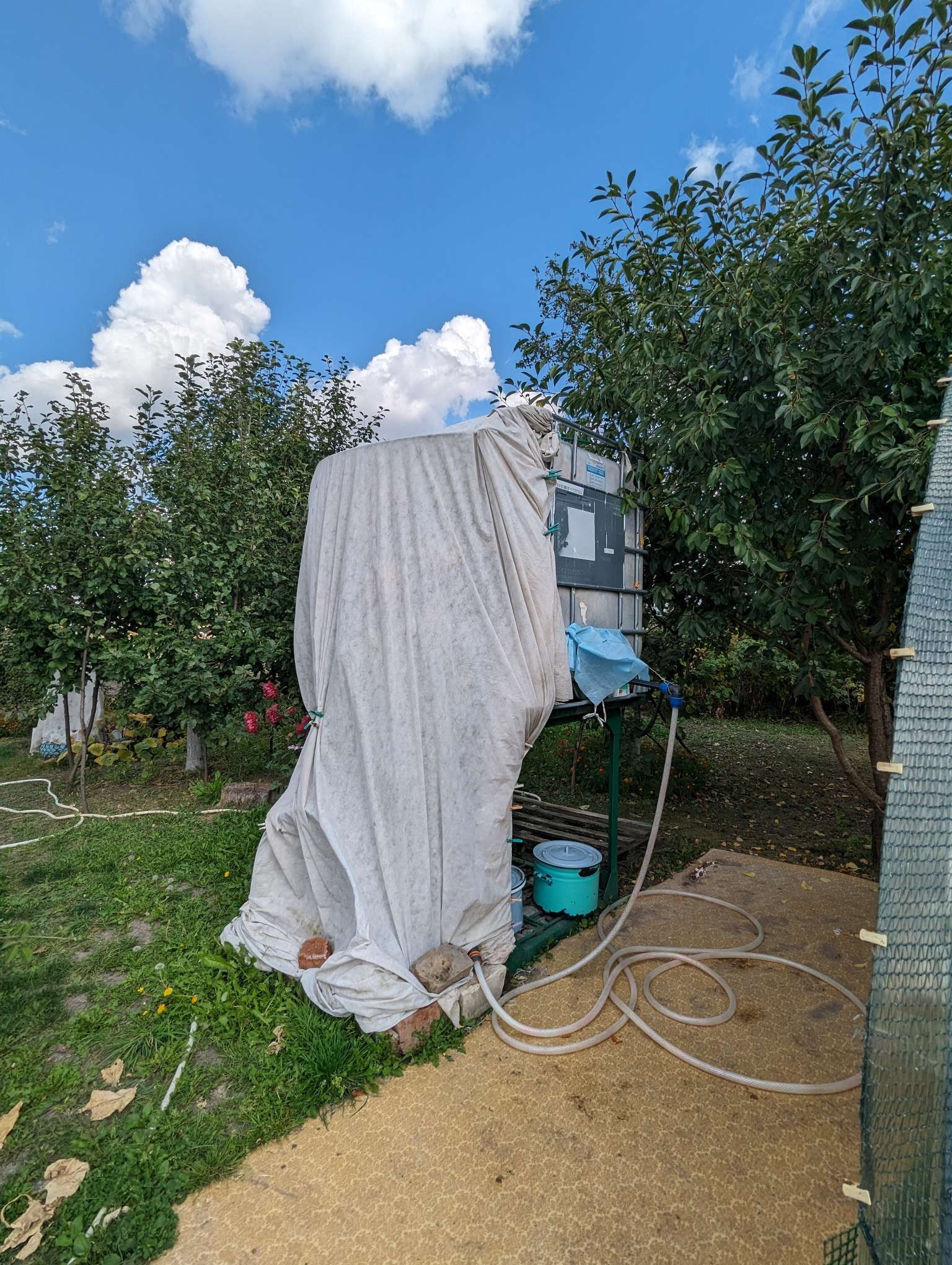 ёмкость для воды еврокуб с подключением подачи воды из ручья( насос,подземная проводка трубы и электричества)