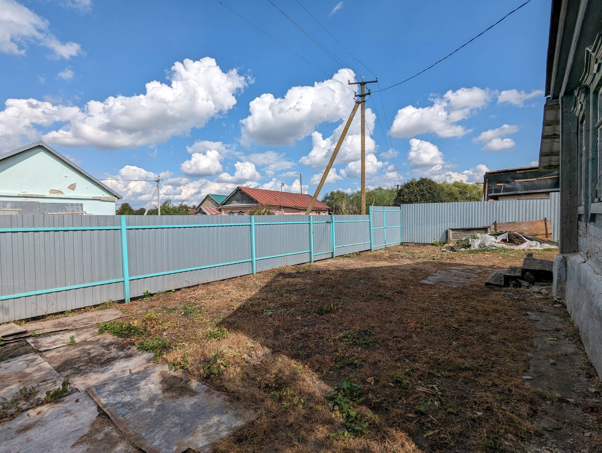 дом обнесён по периметру забором из профлиста