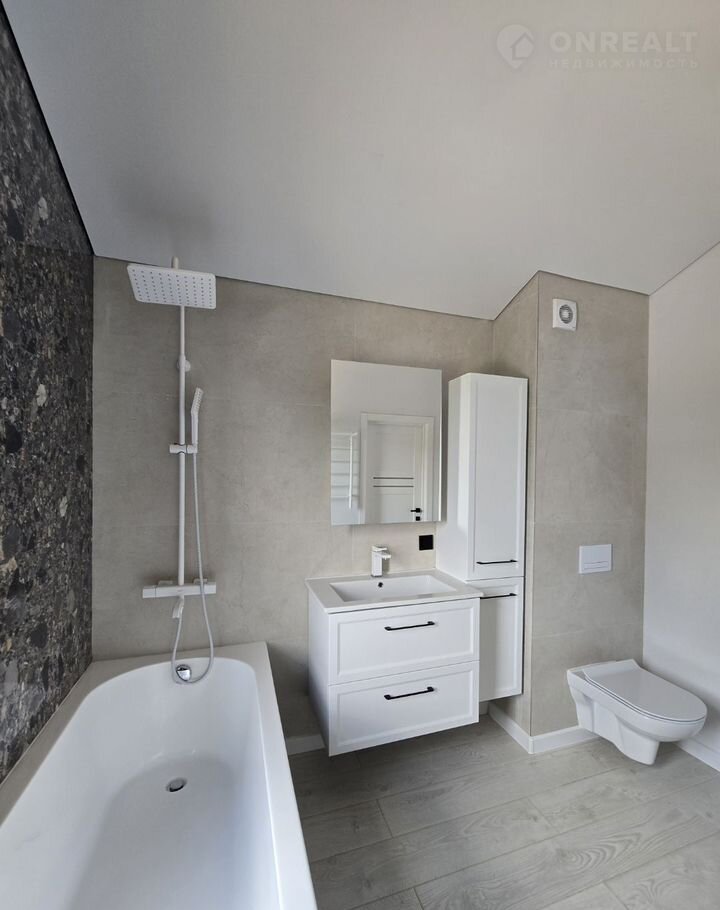 Площадь дoмa - 130 кв.м.: 2 спaльни и 1 мастер-cпальня, 2 санузла, кухня-гостиная, котельная, терраса.
