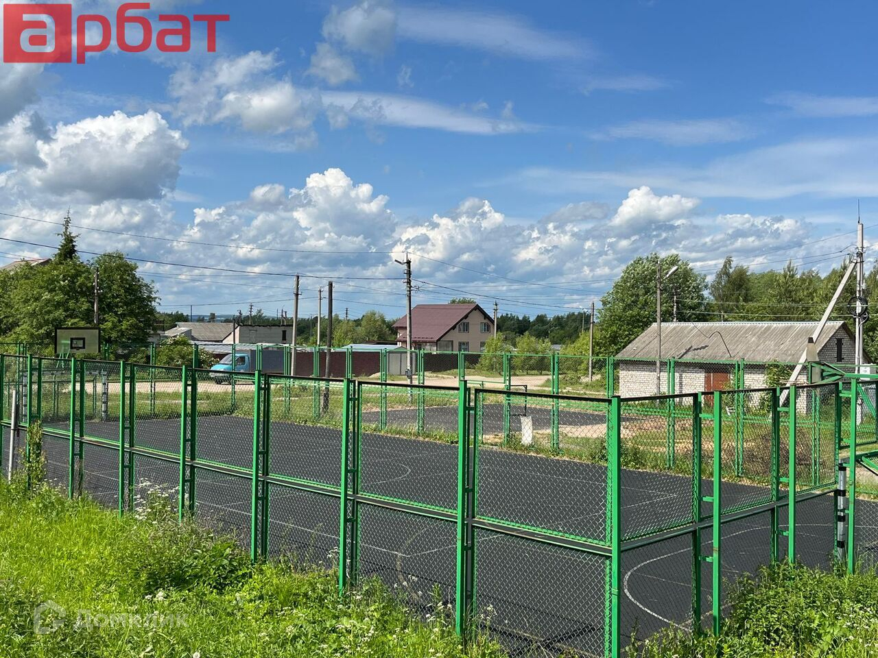 Во дворе дома детская и спортивная площадка, рядом магазин.