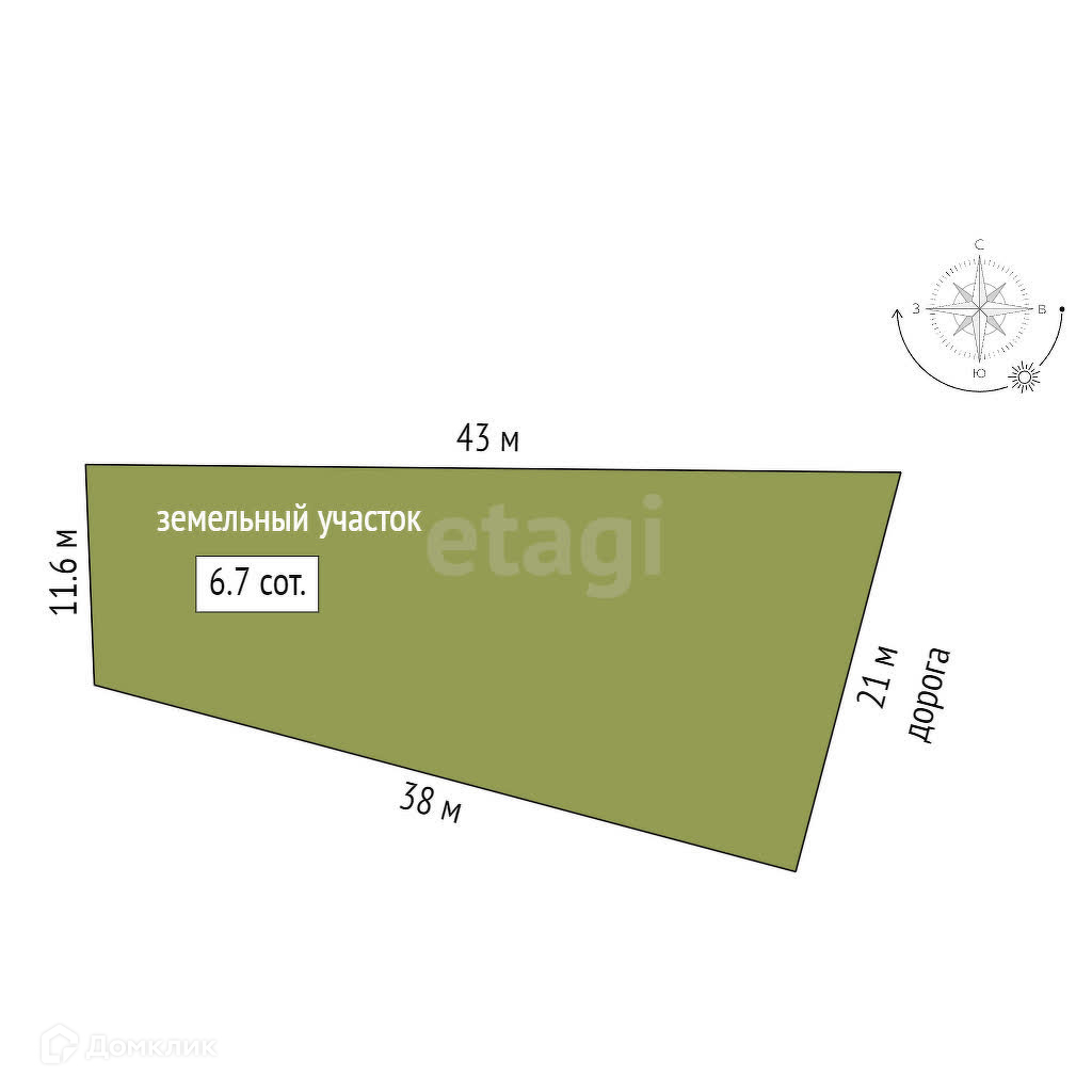 Площадь участка 6.7 сот.