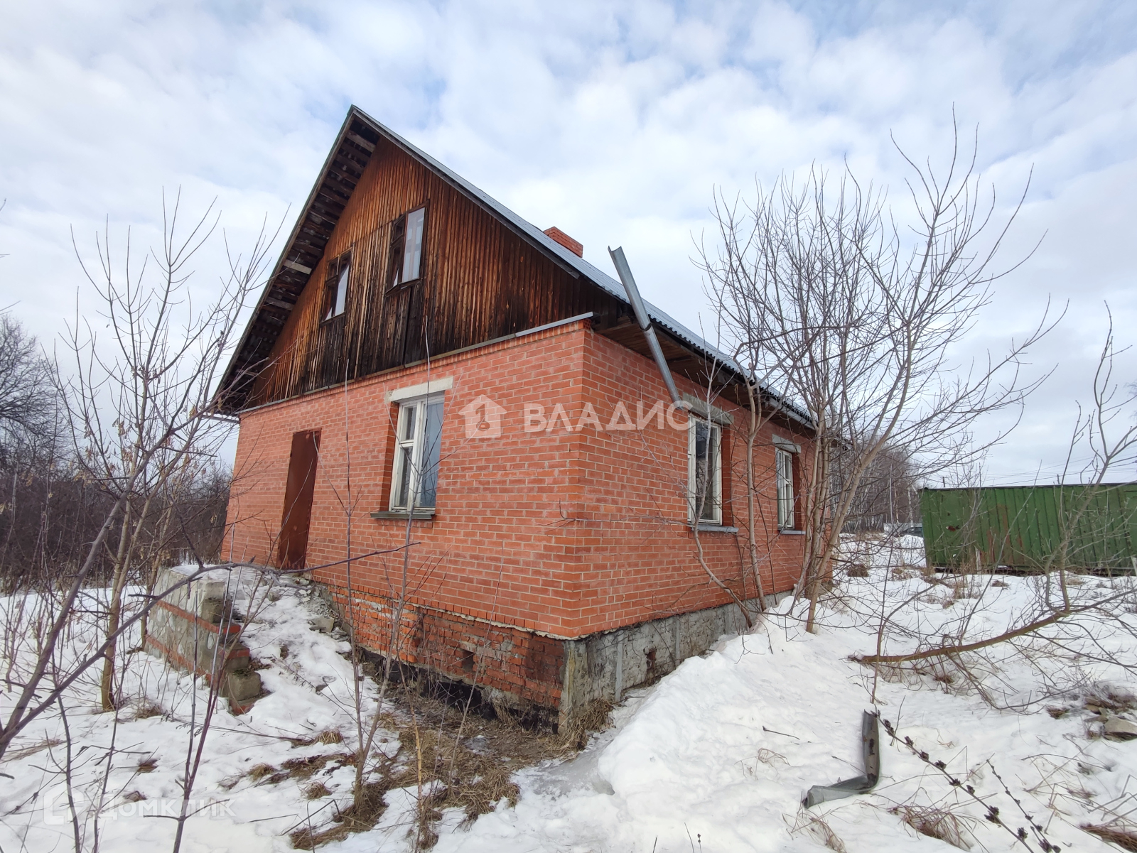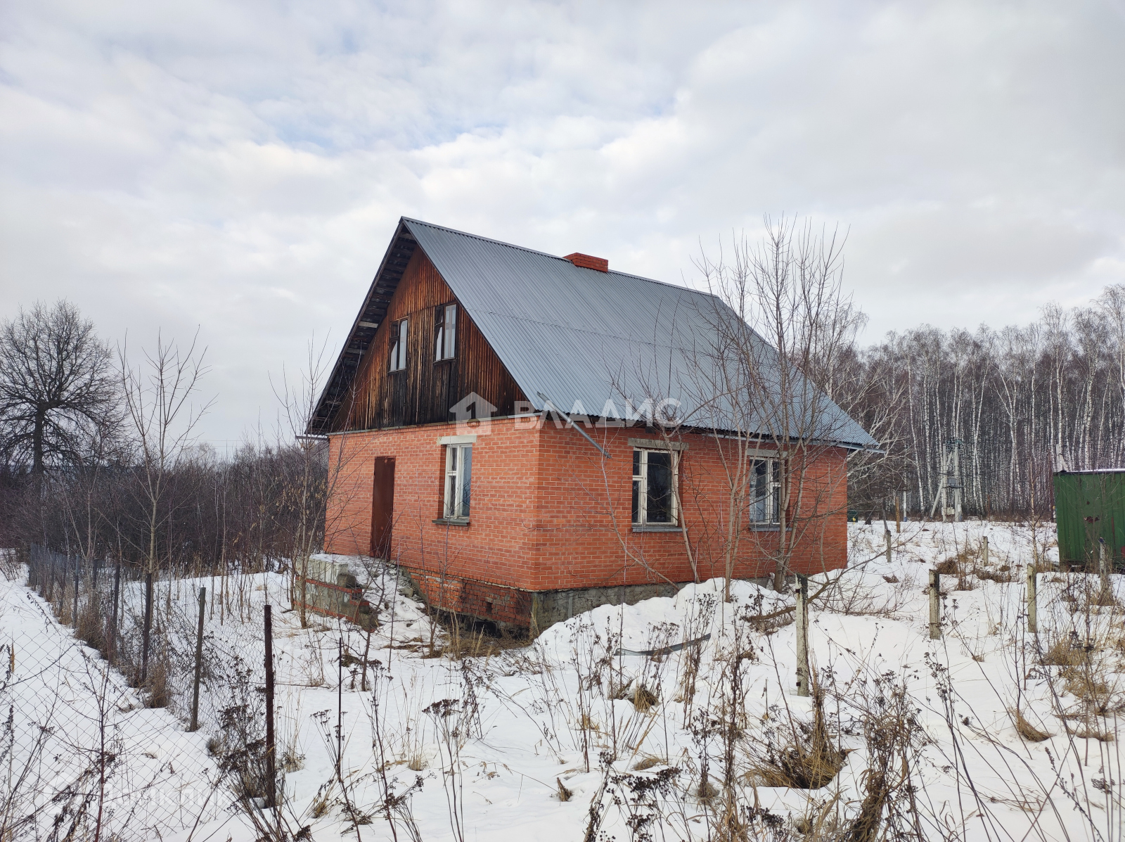 Расположенный на участке дом не введен в эксплуатацию, является недостроем. Построен из блока, облицован кирпичом. Площадь составляет 100 кв.м. В доме есть подвал - 3 м.
