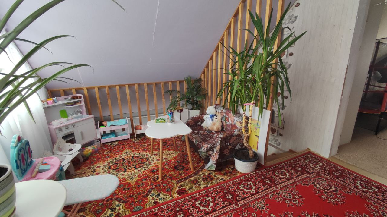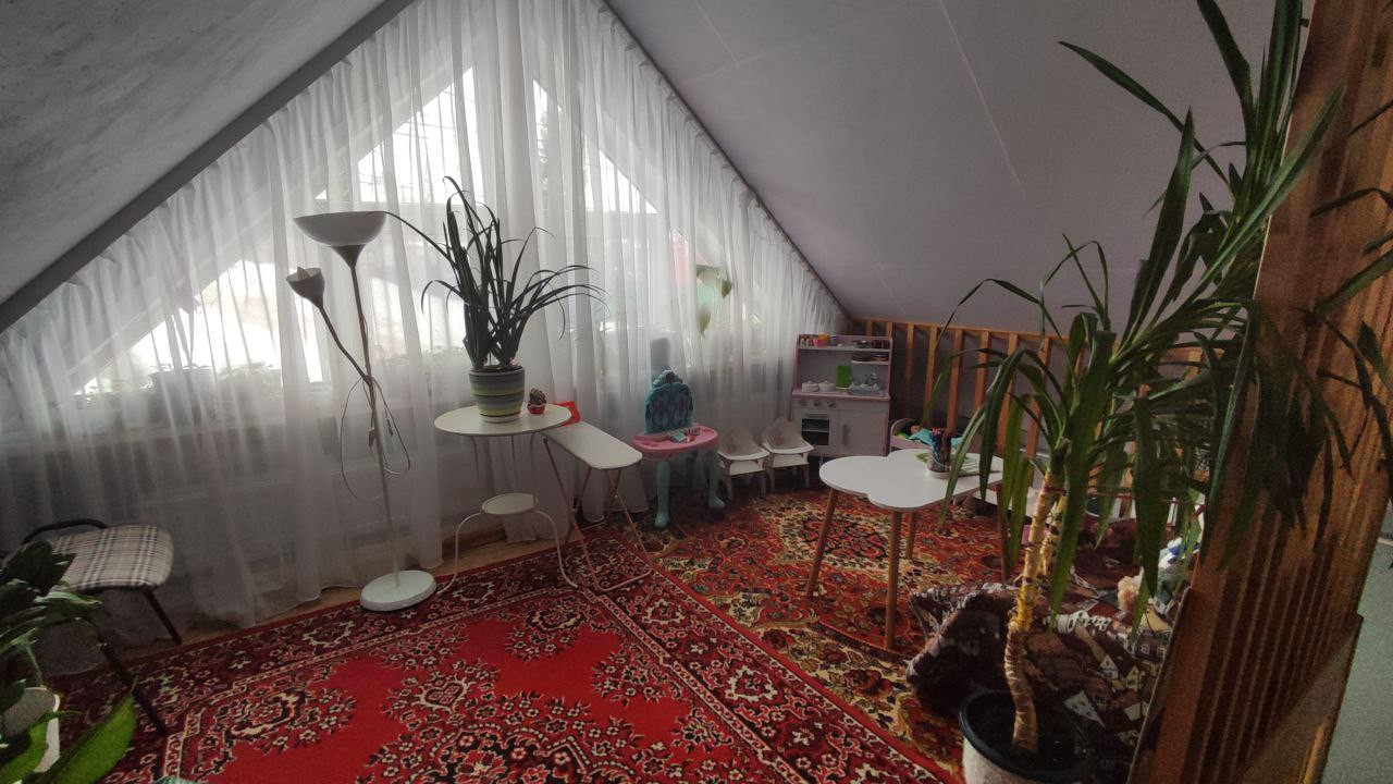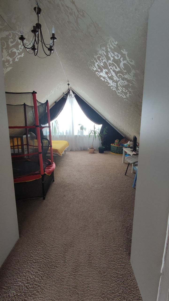 Мансарда имеет одну большую комнату и небольшое пространство для отдыха (в нашем случае игровая для ребенка).