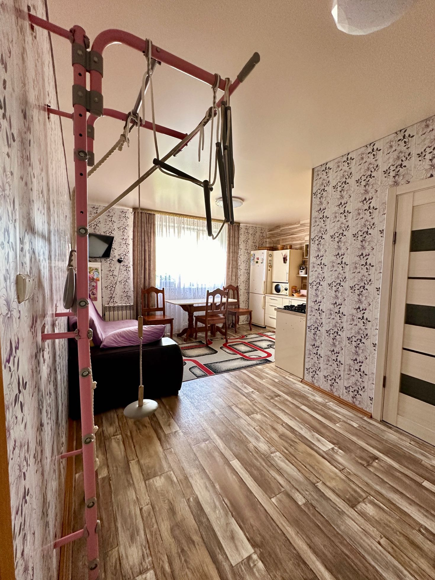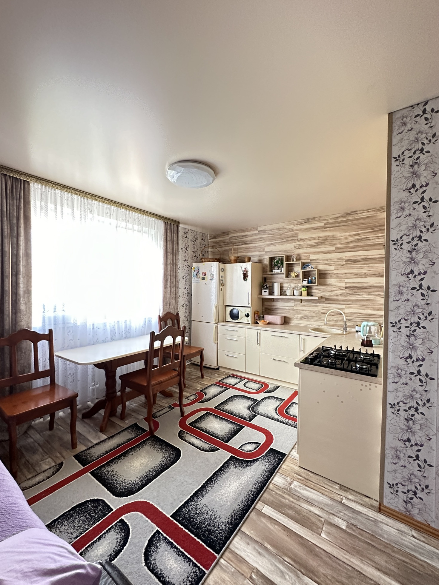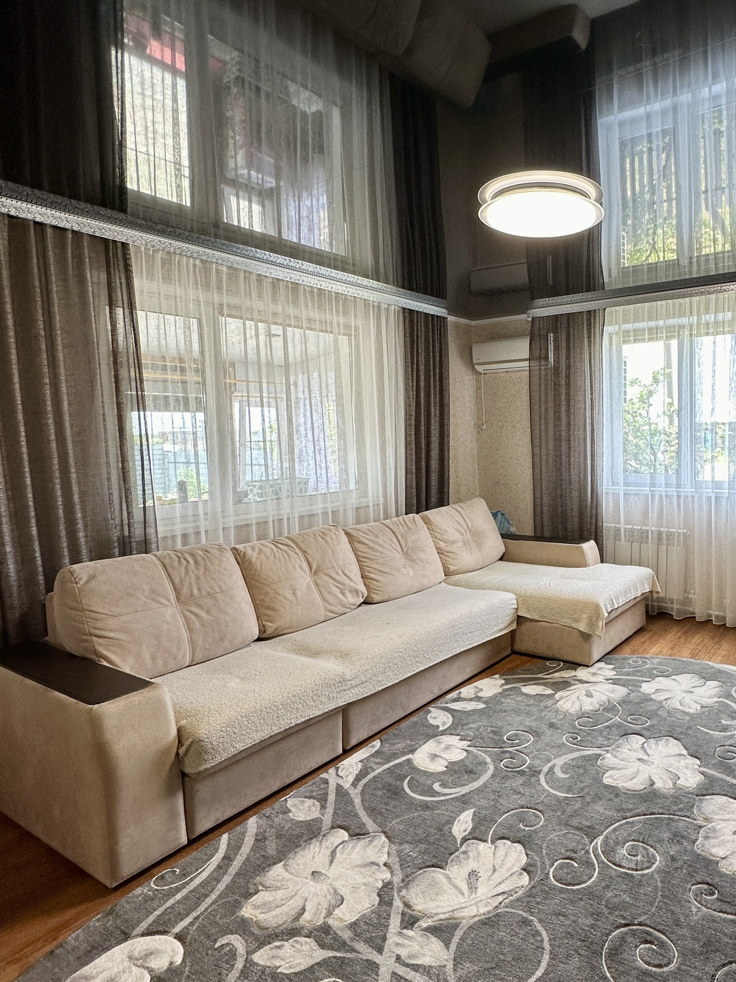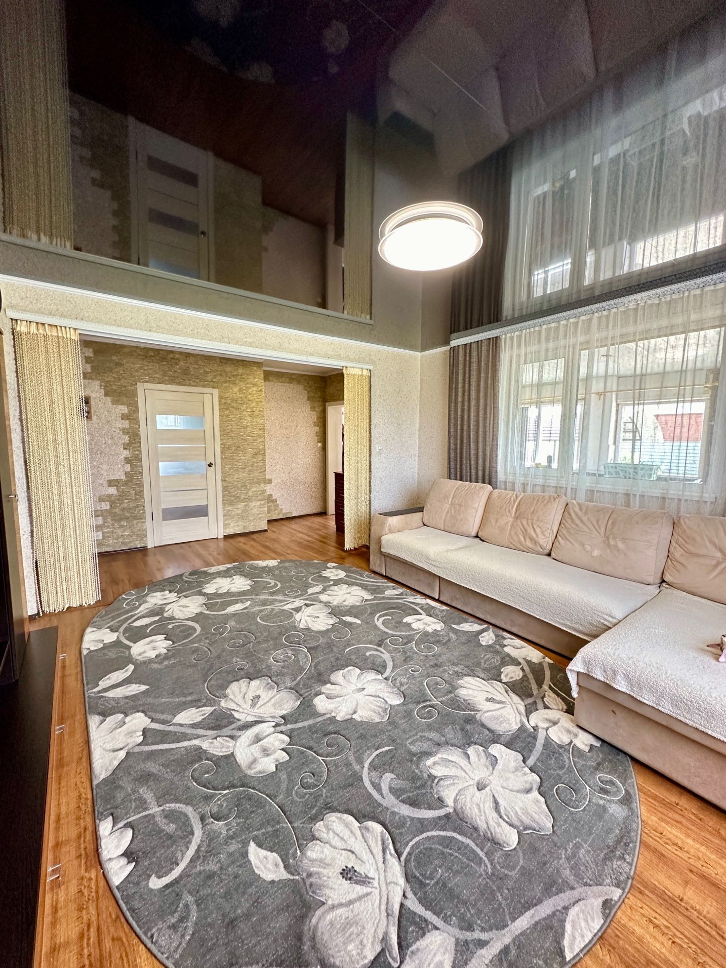Сделан евроремонт. Во всех комнатах установлены евроокна и натяжные потолки.