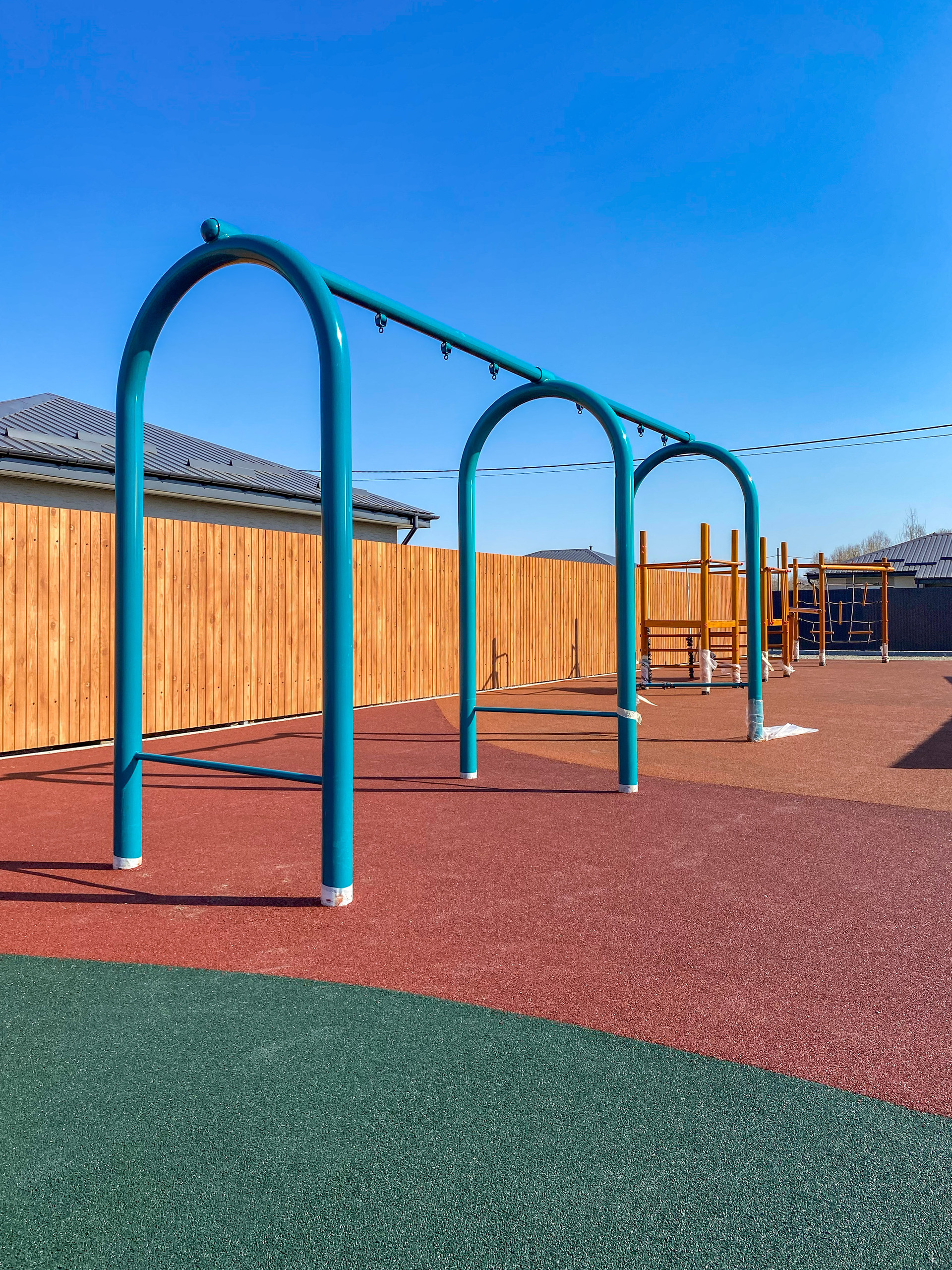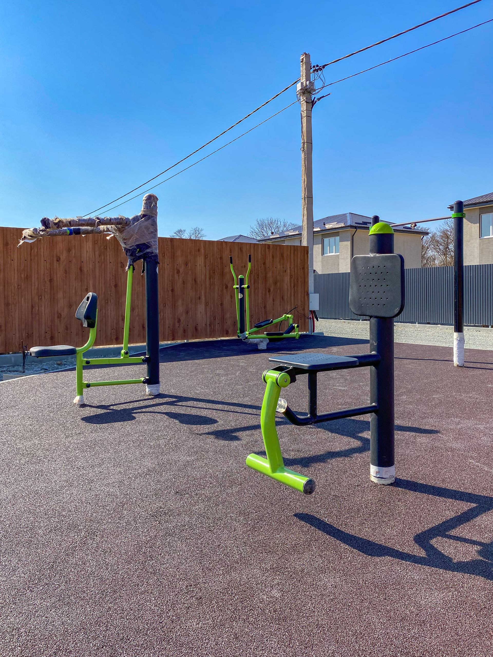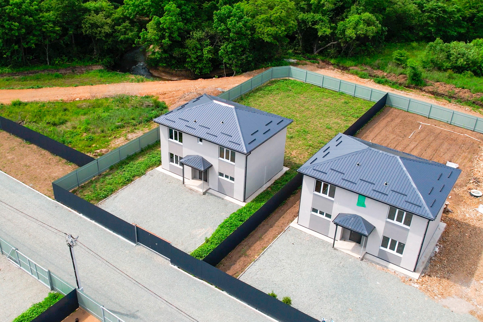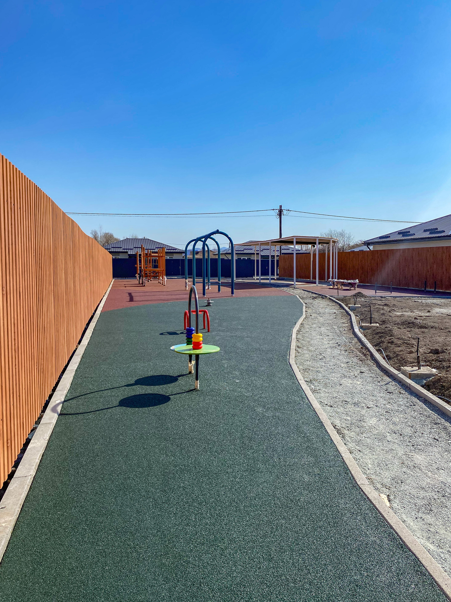 Закрытая территория(шлагбаум), большое общественное пространство, включающее в себя детскую площадку, спортивную зону с тренажерами и большую прогулочную зону со скамейками для отдыха. Предусмотрено уличное освещение. На территории коттеджного поселка осуществлен качественный дренаж дорог, в основании уложен скальный грунт, поверхность полотна отсыпана щебнем.