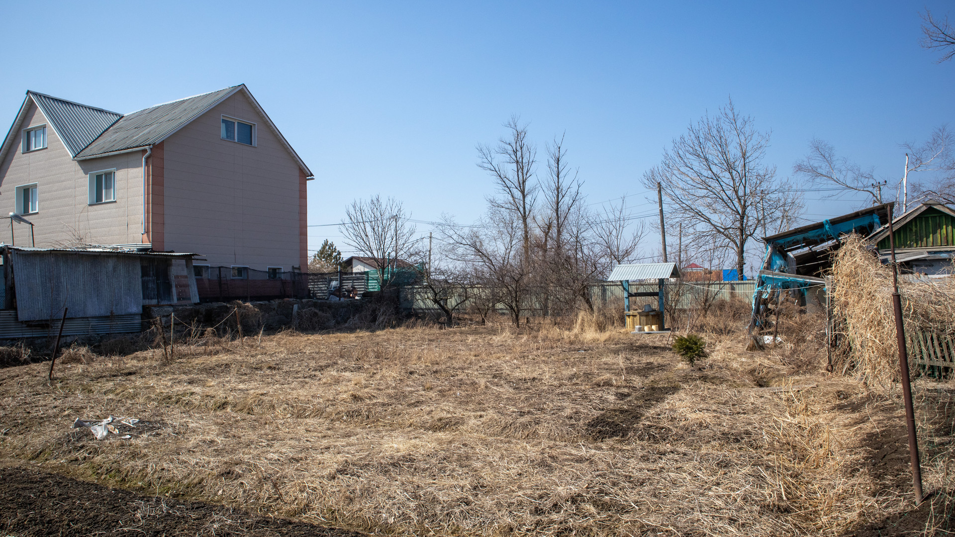 На участке находится дом. Общая площадь 26,7 метров, жилая 19,9 метров. Участок разработан, есть посадки, теплица, колодец внутри участка, глубиной 15 колец, хоз. постройки. Участок рядом с трассой, от трассы сейчас кладут асфальт. Рядом находятся магазин, электричка, почта, аптека поликлиника, отдел МФЦ, детский сад, школа.