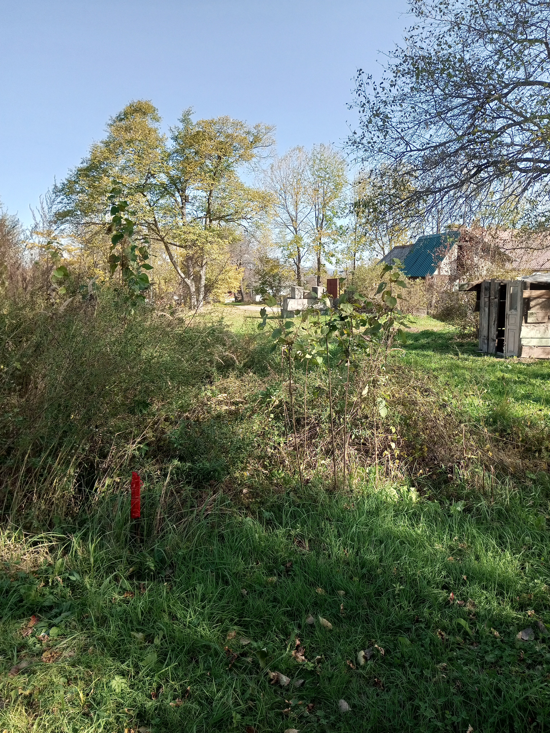 Участок большой, ровный с небольшим уклоном, в районе дома №11. Рядом проходят линии электропередач. Хорошие подъездные пути. Участок тупиковый, граничит с лесной зоной, улица тихая, соседи только с одной стороны. Много зелени, чистый и свежий воздух.