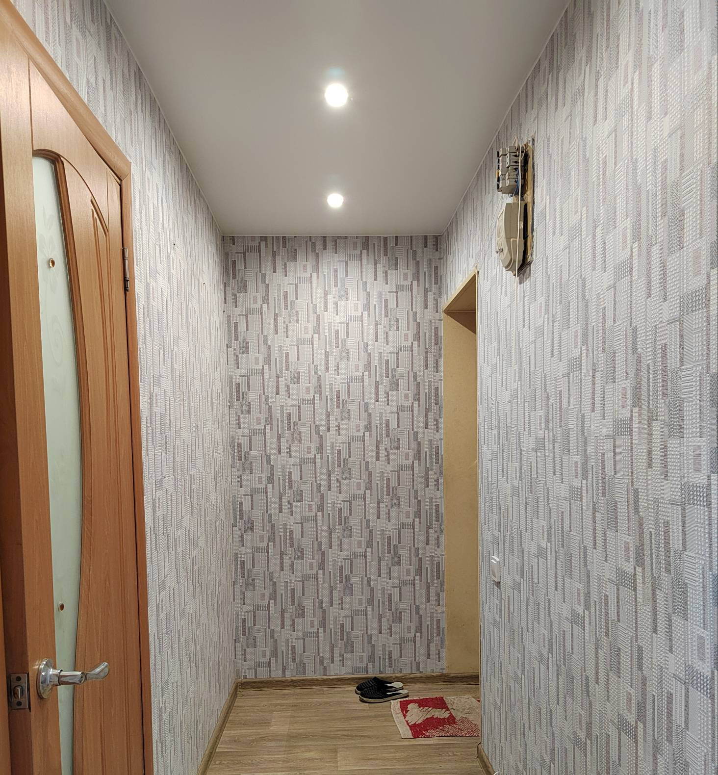 Просторная ниша-гардеробная для хранения вещей. Натяжные потолки. Санузел в кафеле. Бойлер. Окна пластик. Хорошая входная дверь.