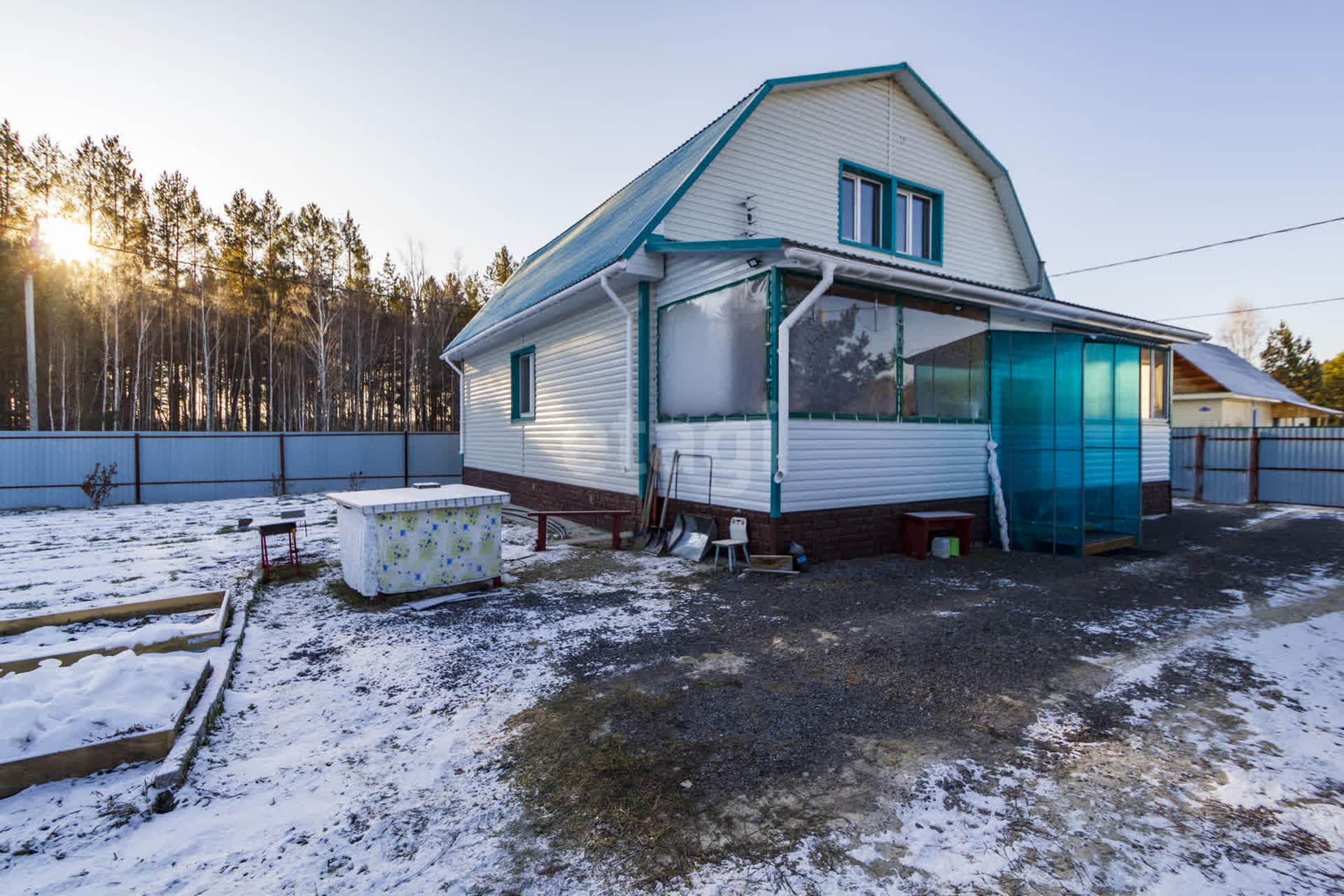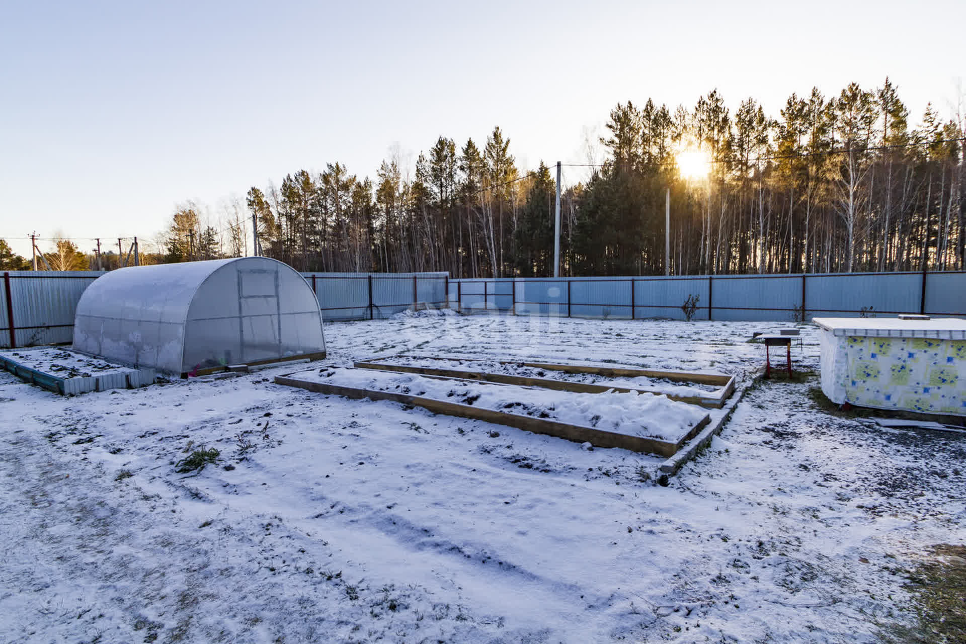 Вывоз мусора каждый день от дома. Заезд на участок с двух сторон. Парковочное место на 4 машины. На участке теплица, посажены садовые деревья, земля разработана.