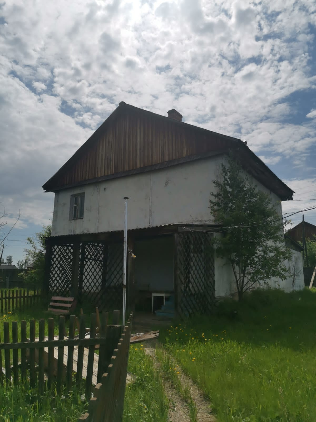Дом панельный, гараж встроенный в дом. На земельном участке есть постройки: баня, теплица.