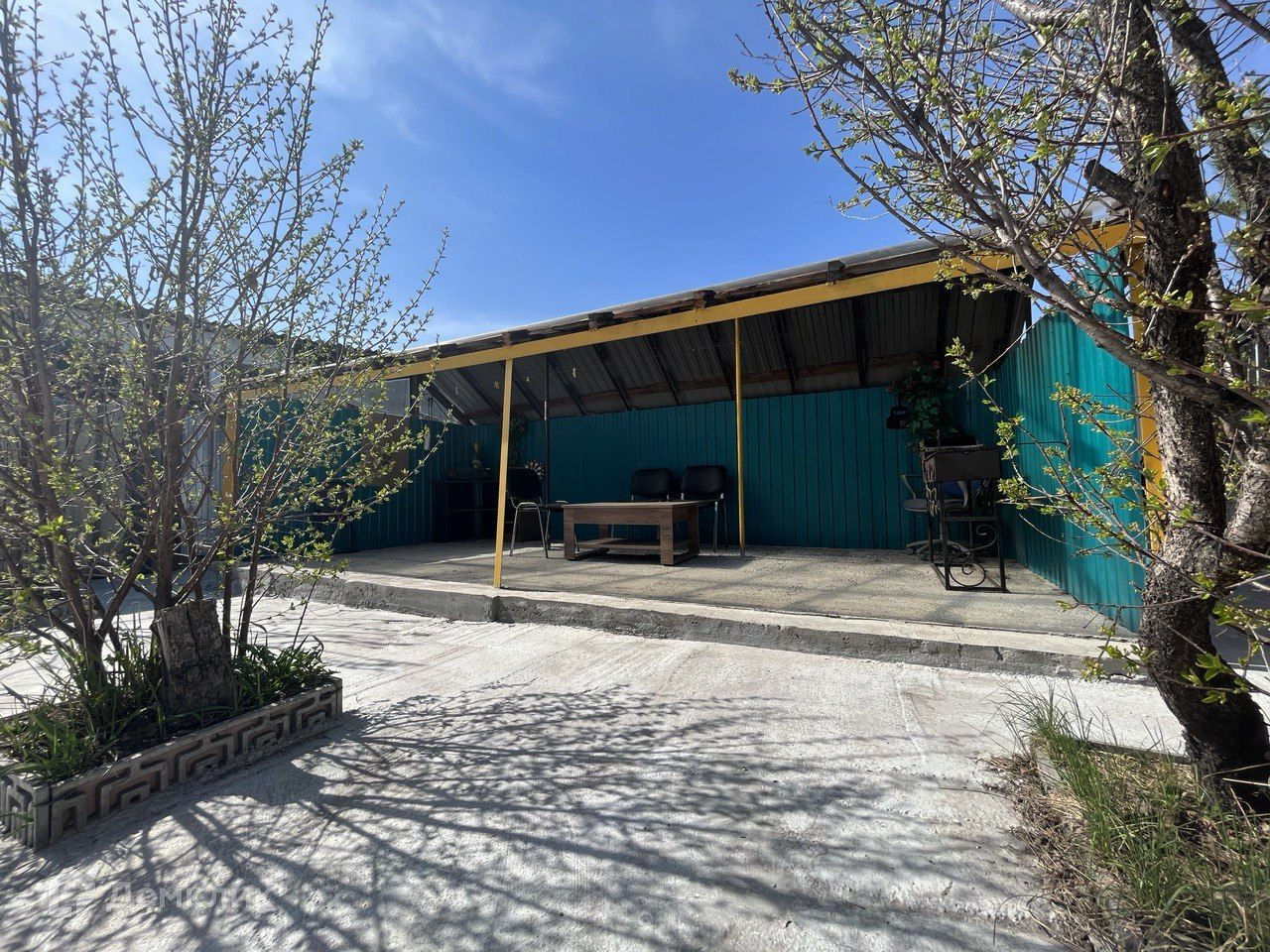 Также во дворе посажено много деревьев и цветов: алыча, яблоня, две вишни, сосенки-которые можно нарядить на Новый год!