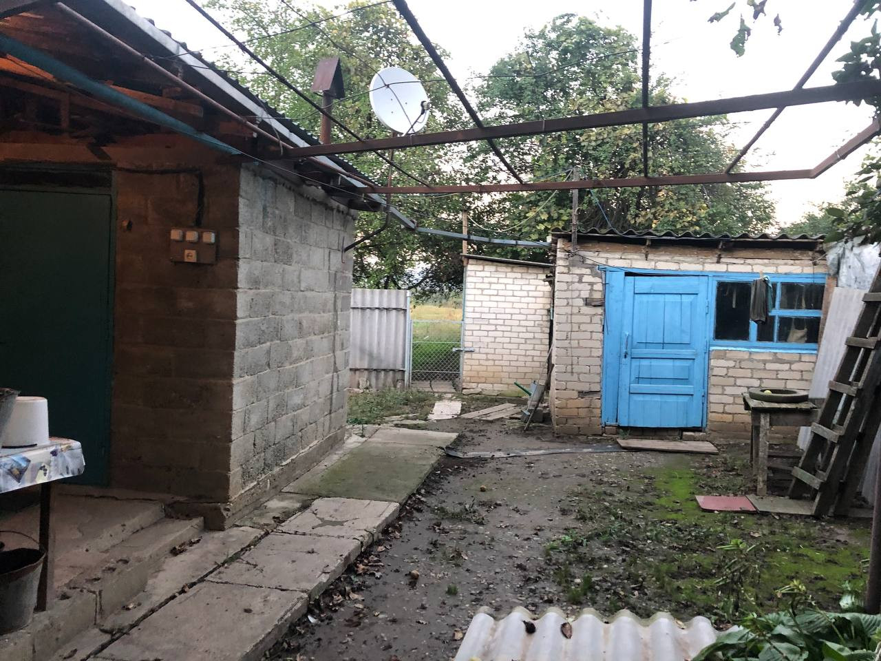 На участке расположен ещё один маленький жилой дом, хоз. постройки (сараи, крольчатник, курятник), выгребная яма