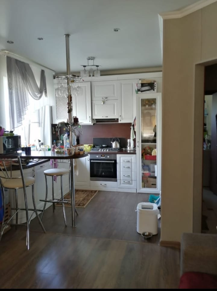 Гостиная с кухней совмещена,кухонный гарнитур остаётся.