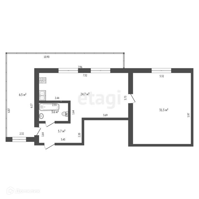 кухонная зона 24,7 кв.м