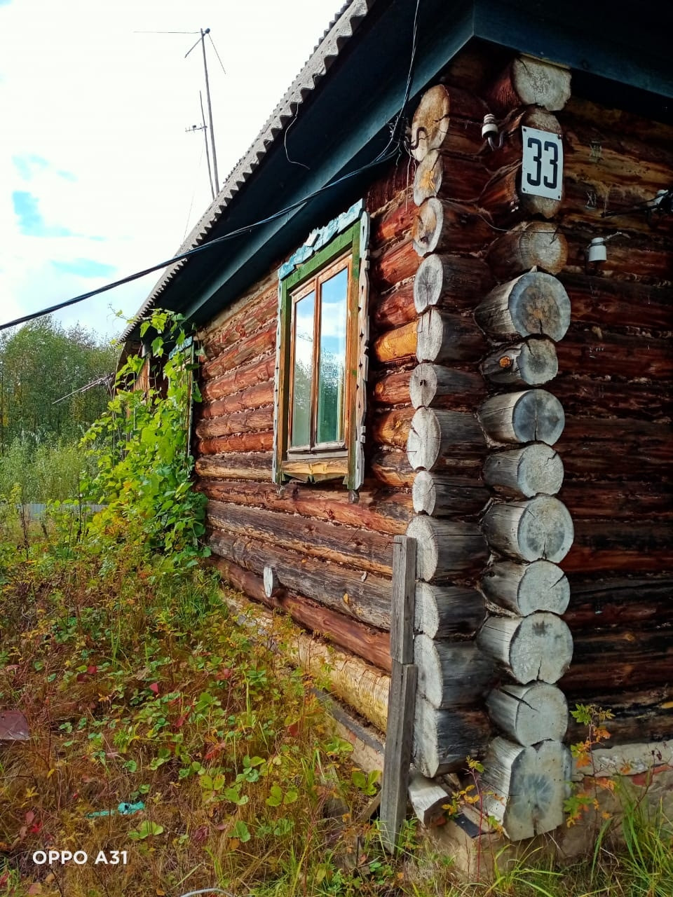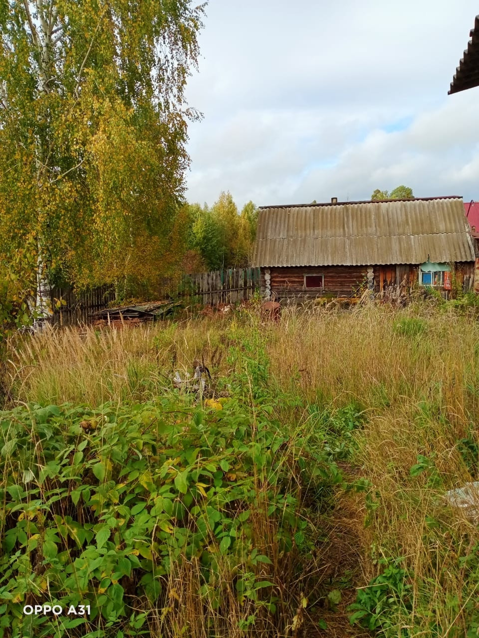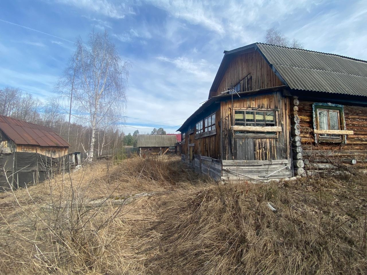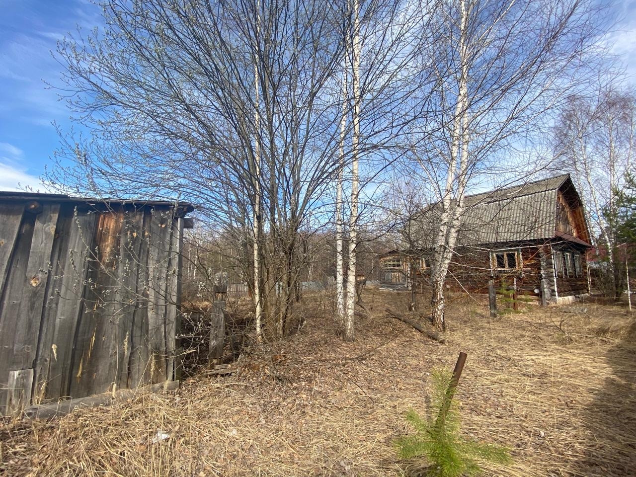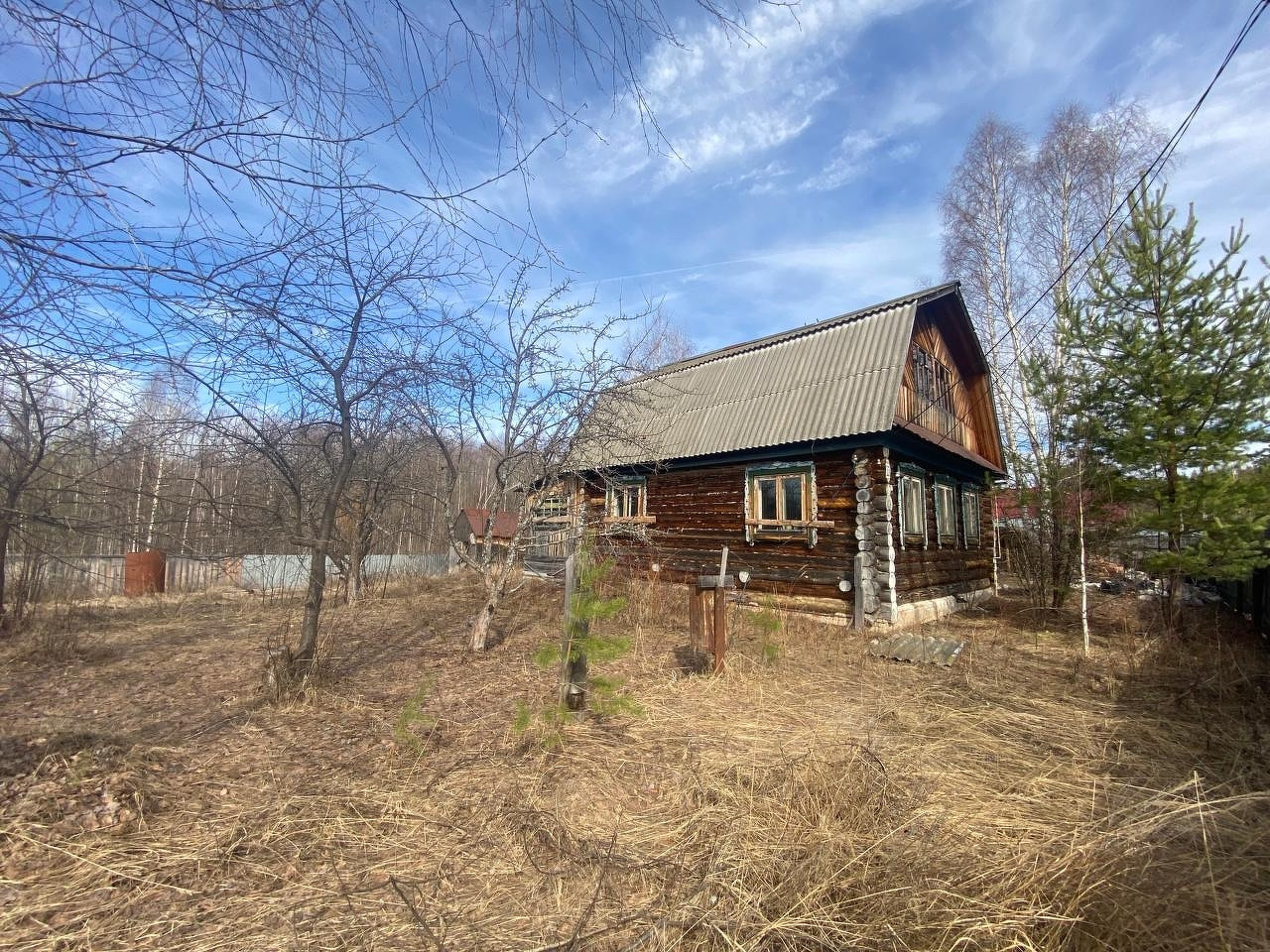 На участке есть дом из бревна 1993 года. Также есть баня.