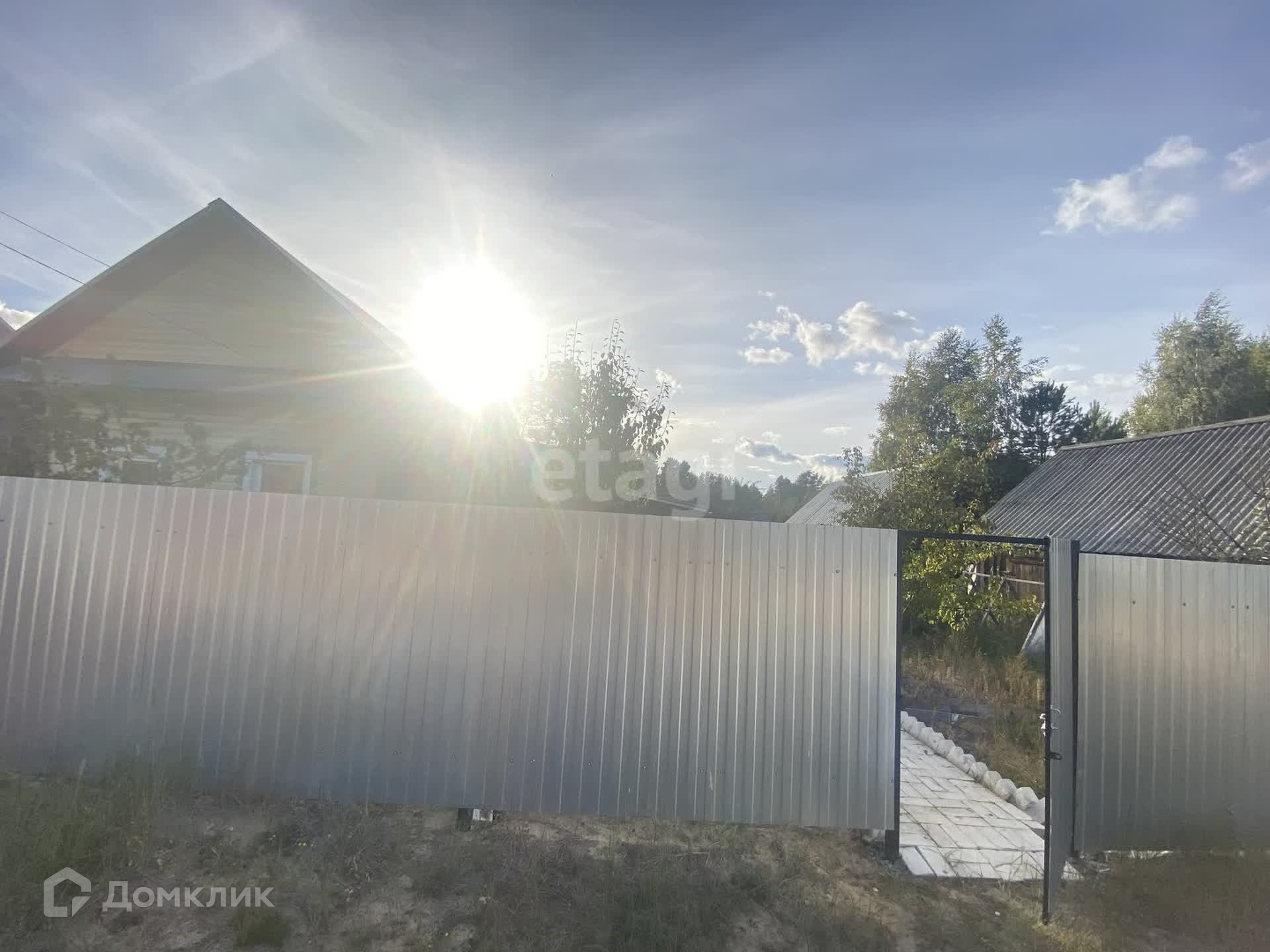 Установлен новый забор из профлиста с воротами для заезда автомобиля.