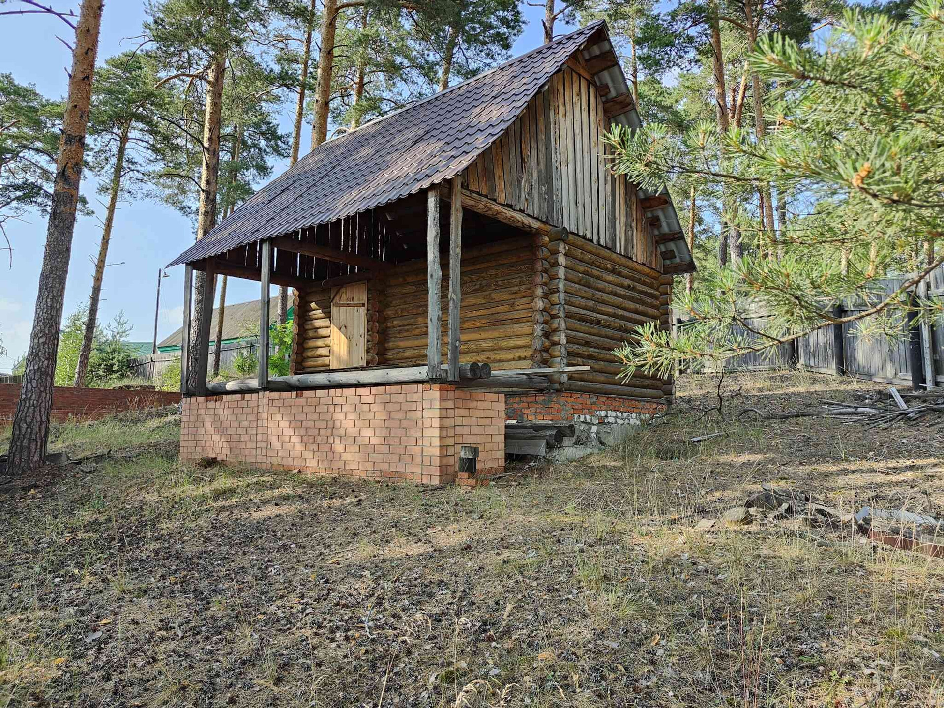 На участке возведен цокольный этаж красивого загородного дома, а также дровяная баня без отделки.