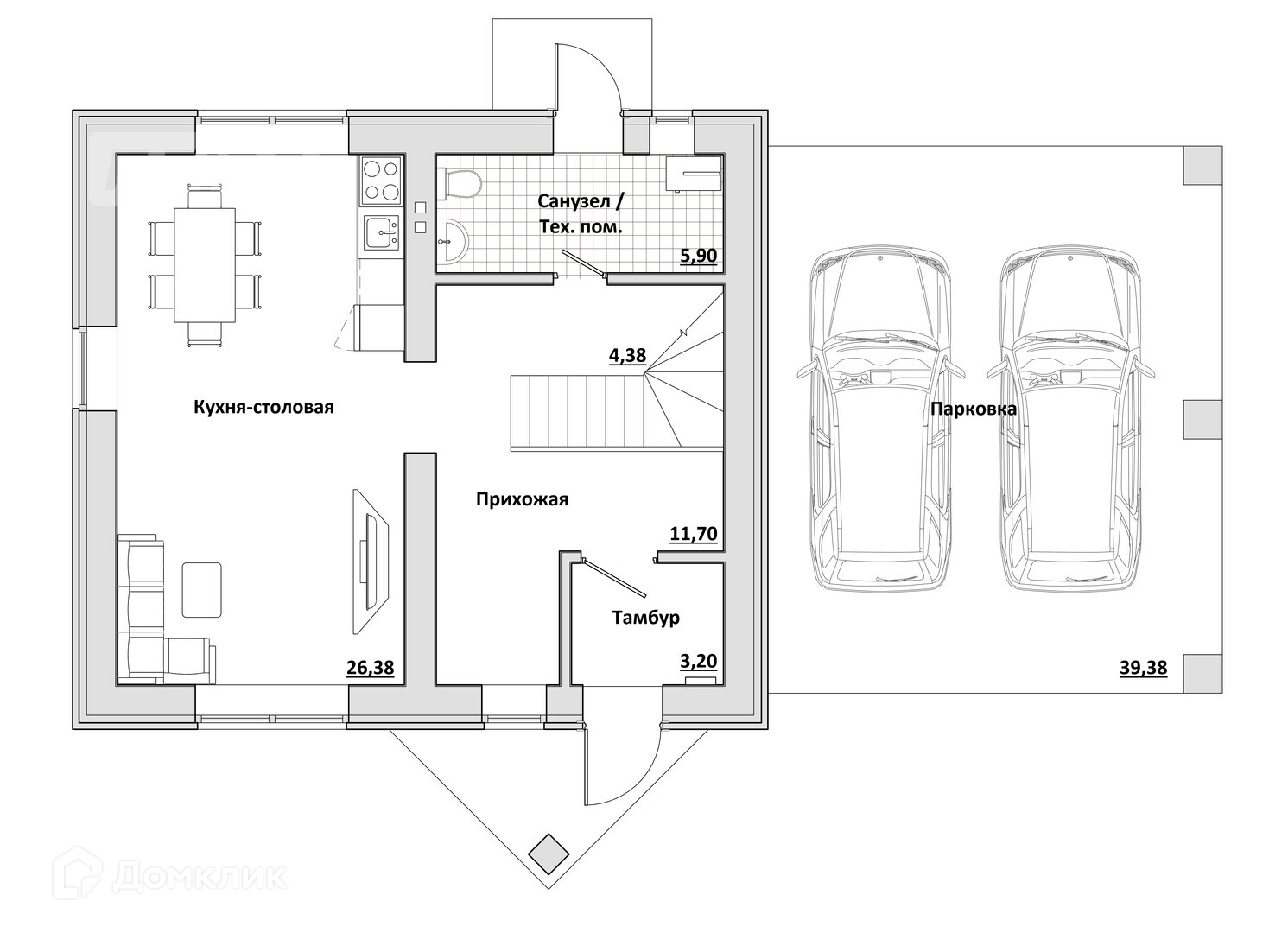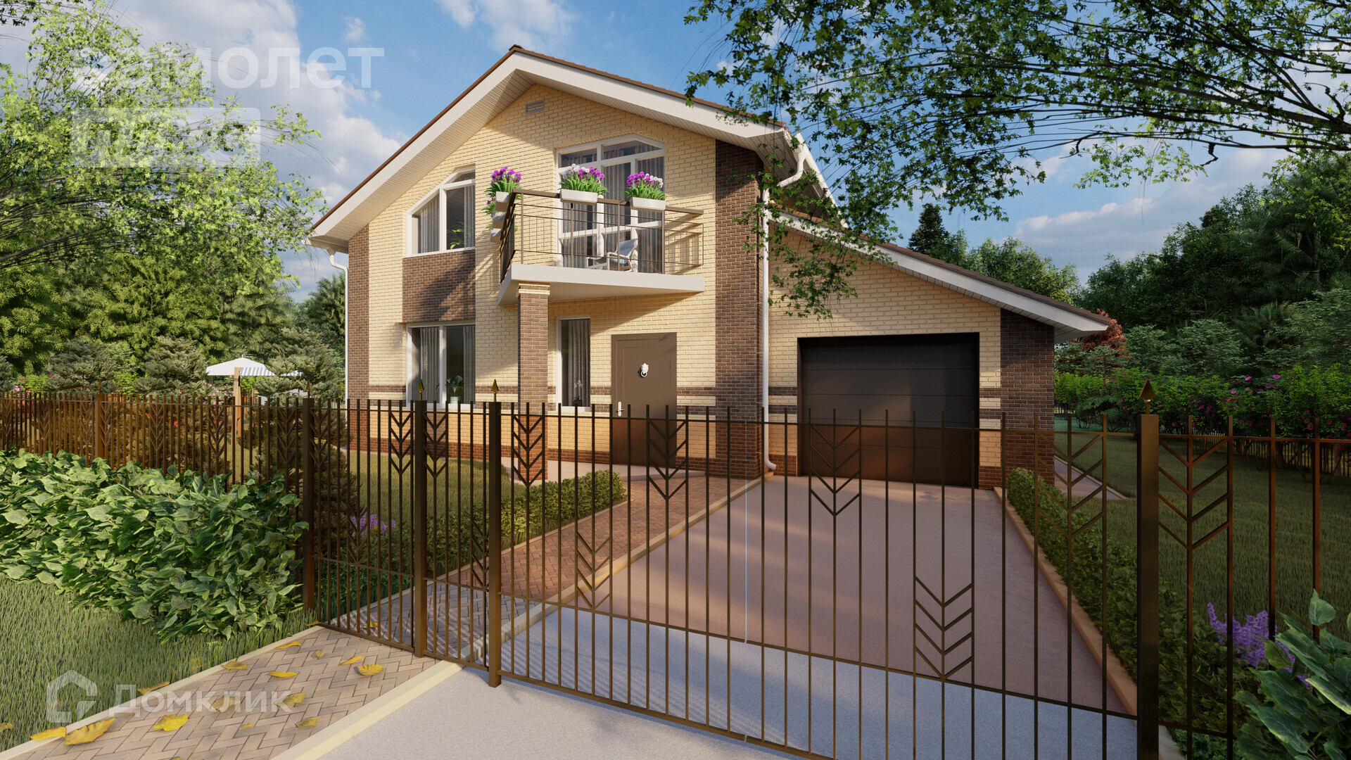 К дому пристроен гараж на два автомобиля.