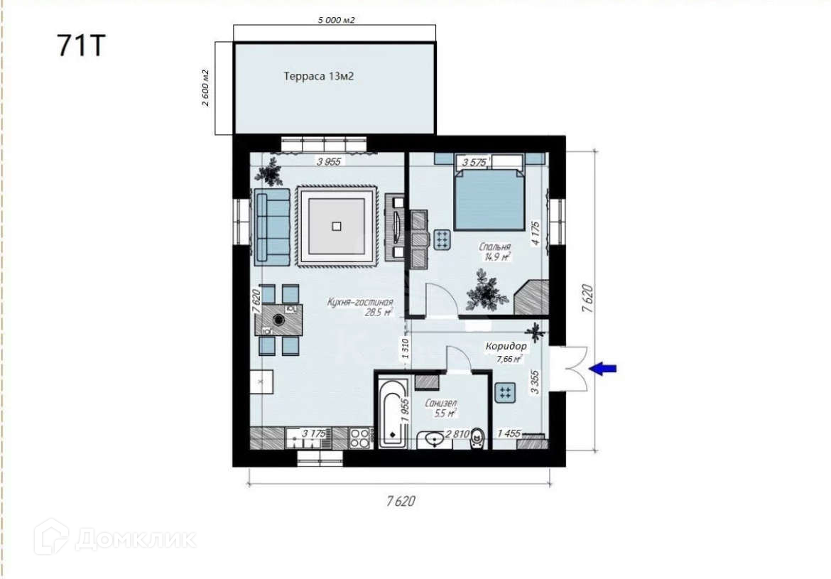 Общая площадь 71 м2