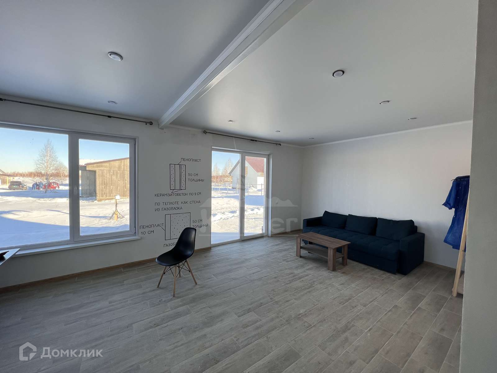 Сдан дом будет с предчистовой отделкой, с теплым полом, натяжными потолками и качественными стеклопакетами.