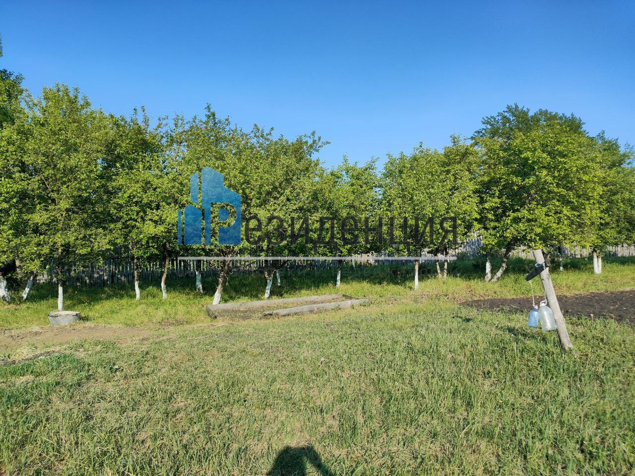 Участок земли обработан, имеются взрослые плодоносящие яблони.