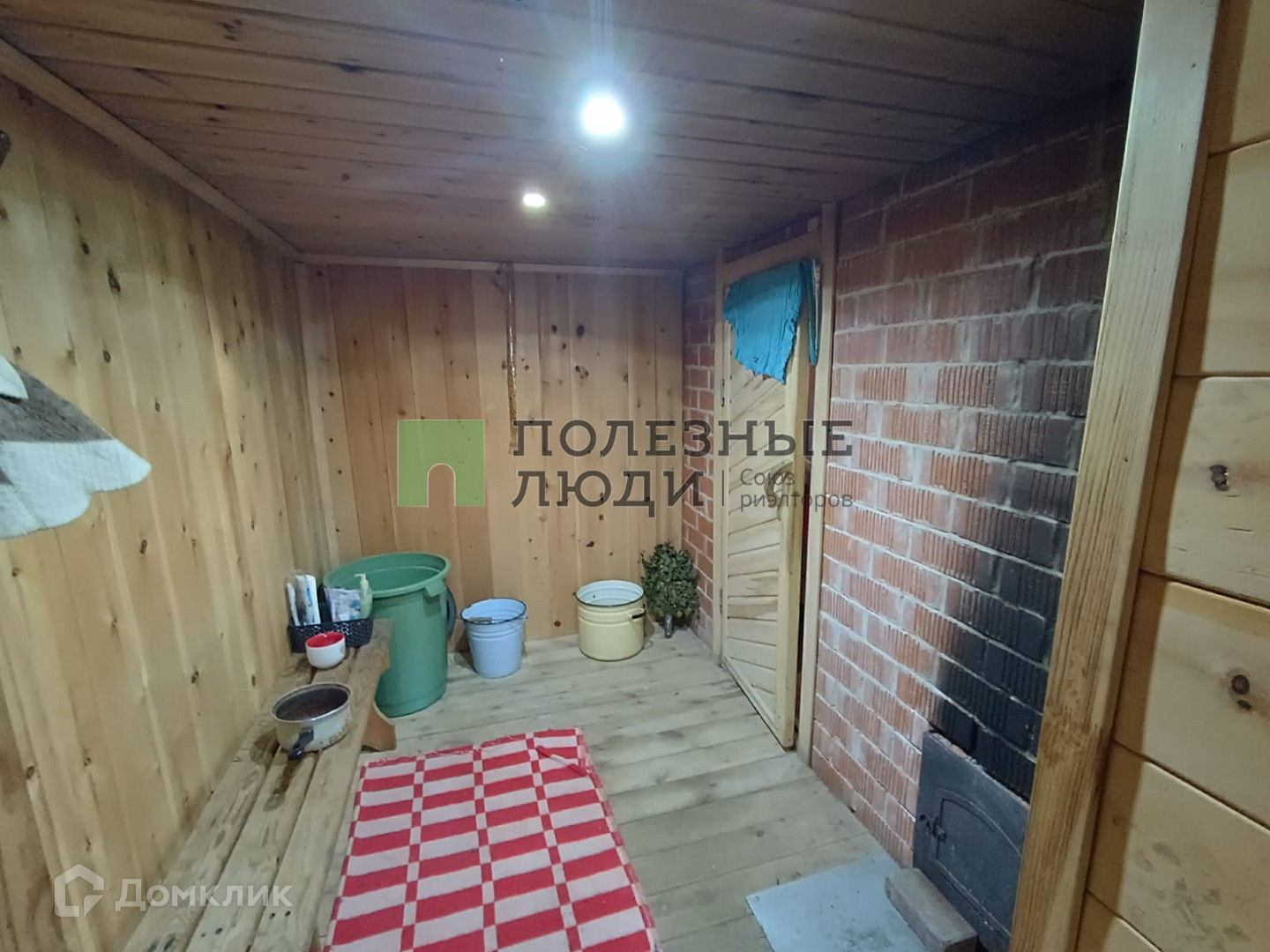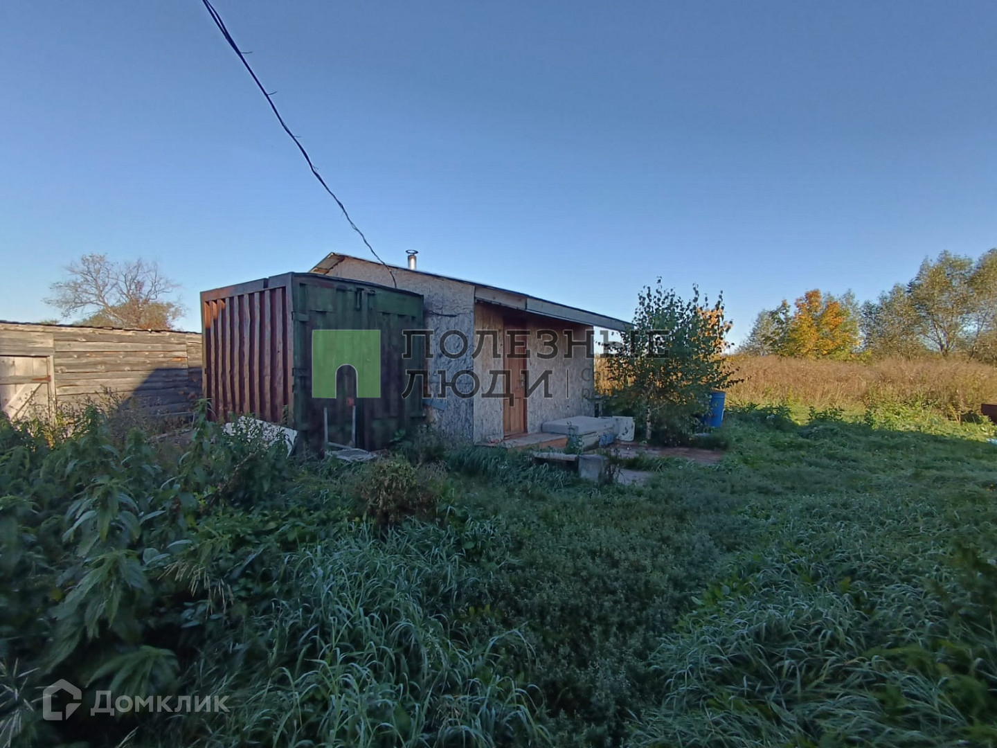 на участке баня из бревна с комнатой отдыха, дровник.