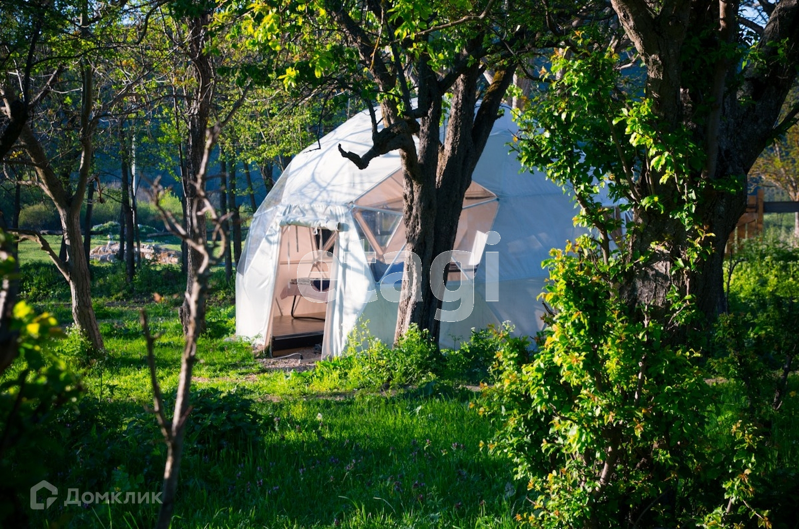 6. Действующий глэмпинг из 7-ми сферических шатров, диаметром 5 метров каждый. Каждый шатер оборудован полом, электричеством, обогревателями. Вмещает комфортно до 4-х гостей. На всей территории работает вай фай. Провайдер Нео Телеком.