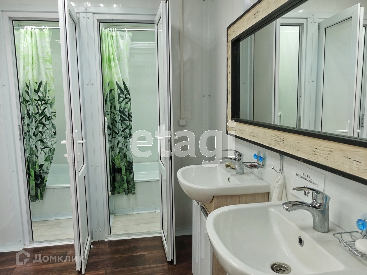В каждом по 2 душа и 2 туалета с горячей водой (бойлерный подогрев). Септик с разделением отходов туалета и душа. Воду от использования душей можно сливать самостоятельно. Для туалета заказывать осенизатор 2 раза за сезон. по 3000 р за 1 раз