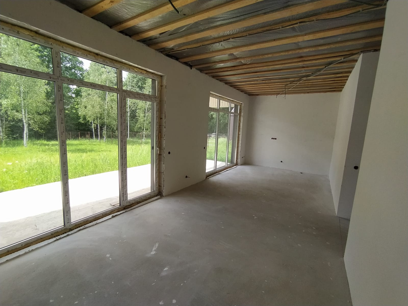 Дом 104,1 м кв, построен в 2023 году. Фундамент – монолитный, армированный, сверху монолитная плита, установлен тёплый водяной пол по всей площади дома. Материал стен - газоблоки бонолит, с утеплением минваты 150 мм. Кровля - металлочерепица от Grand Line с утеплением минвата 150 мм, окна и двери фирмы Rehau.