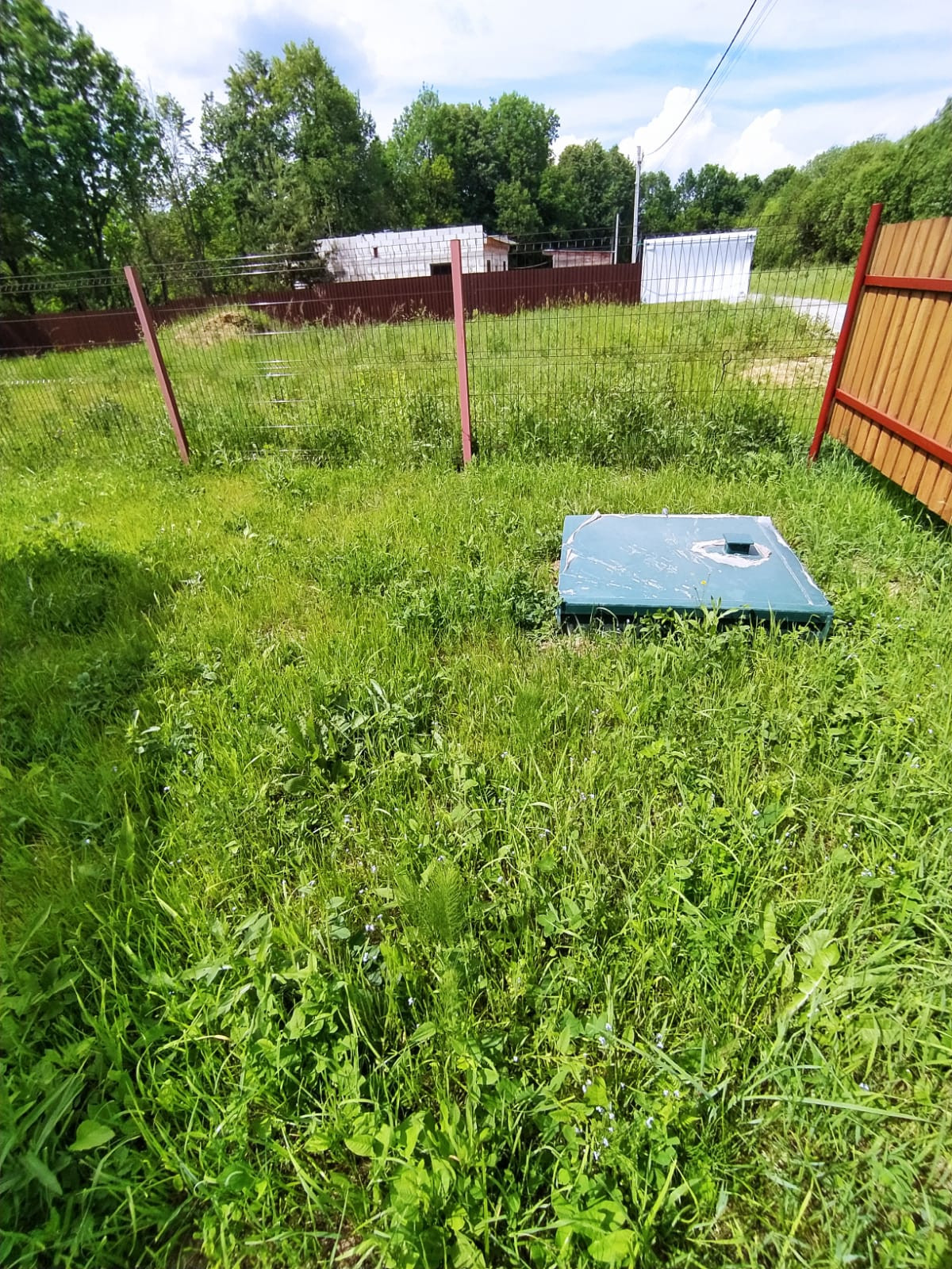Участок: 8 соток, ровный, правильной формы, граничит с лесом, забор- лицевая сторона штакетник, по периметру сетка- рабица, установлены ворота и калитка.