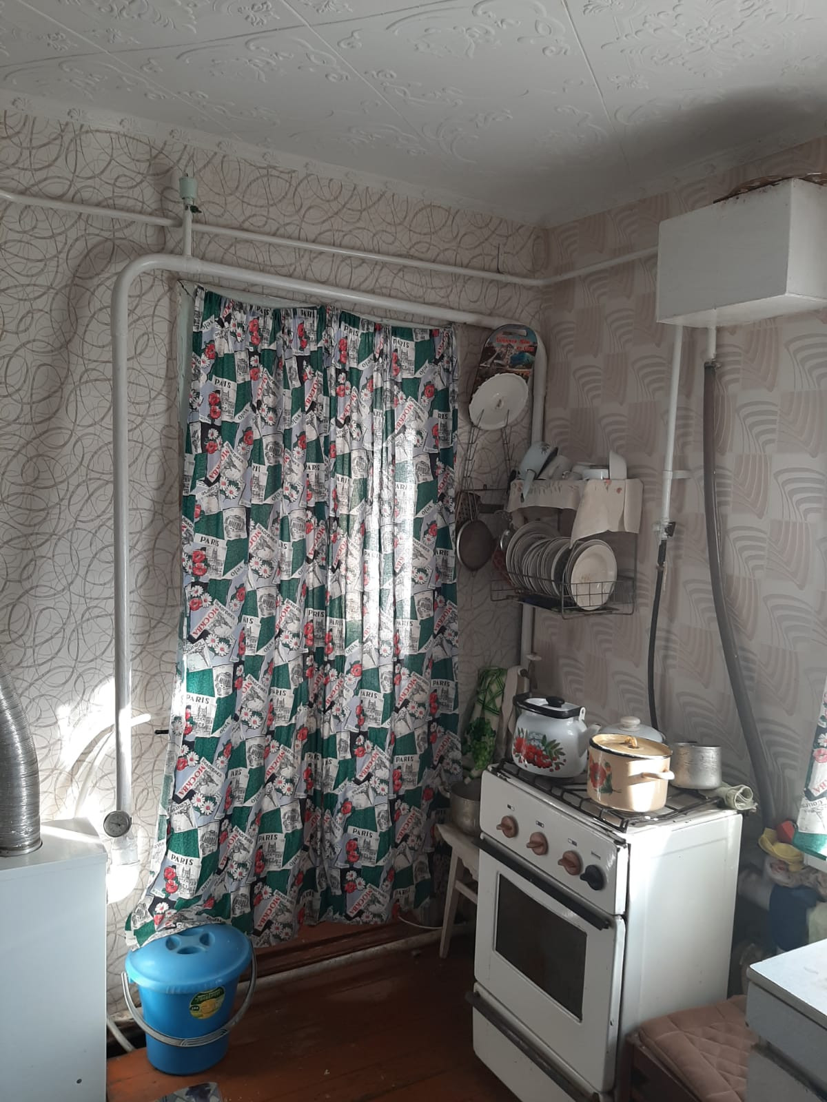 В доме газовое отопление, газовая плита, электричество, вода из центрального водопровода, пластиковые окна.