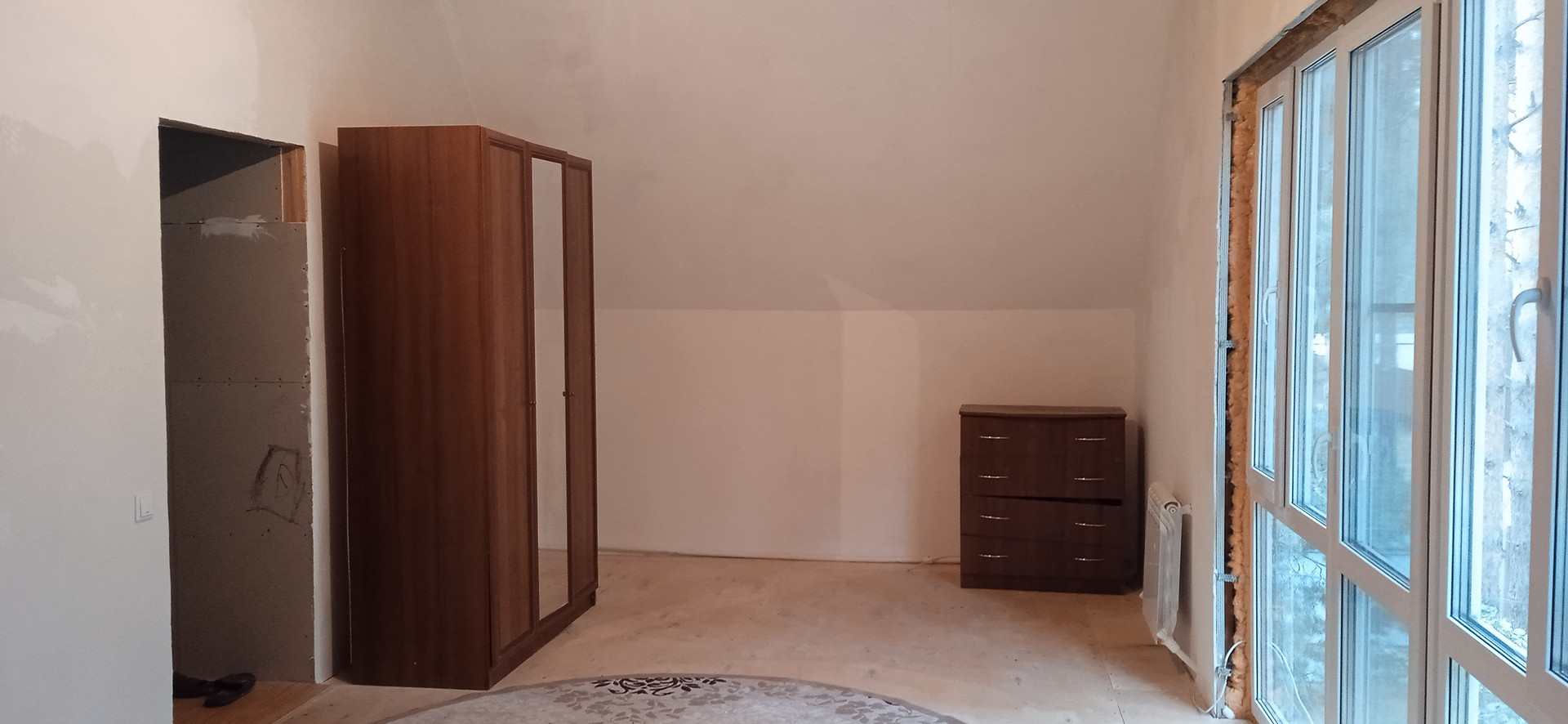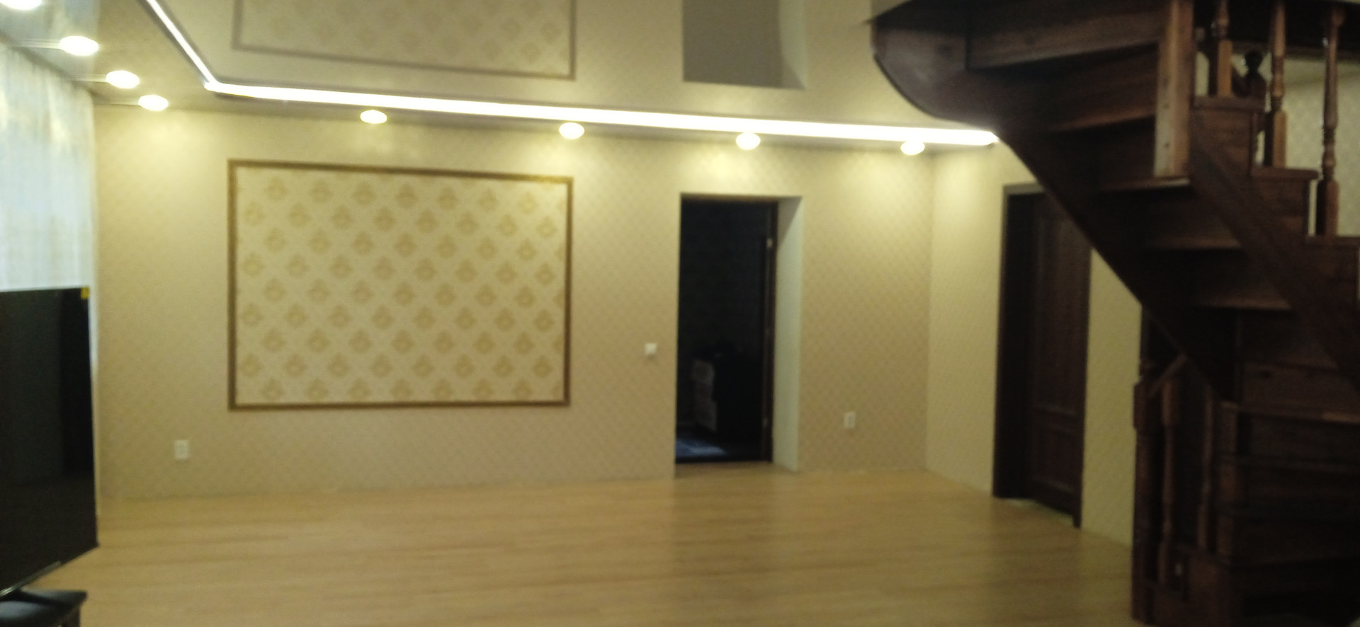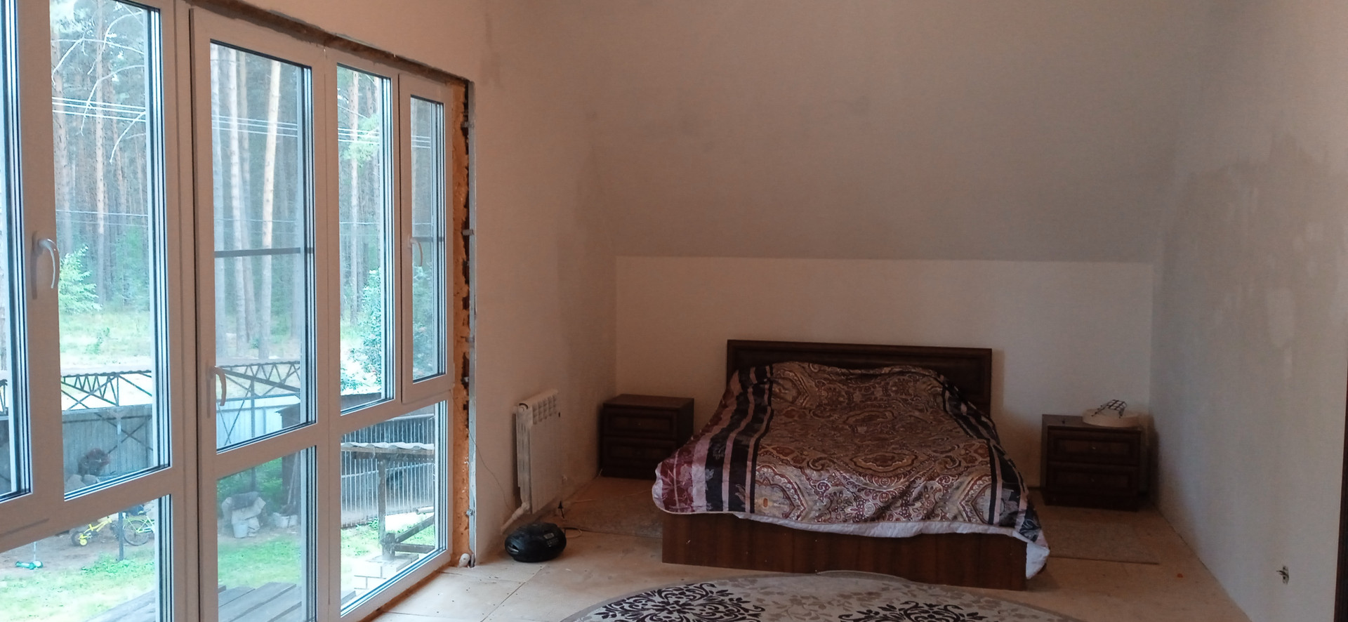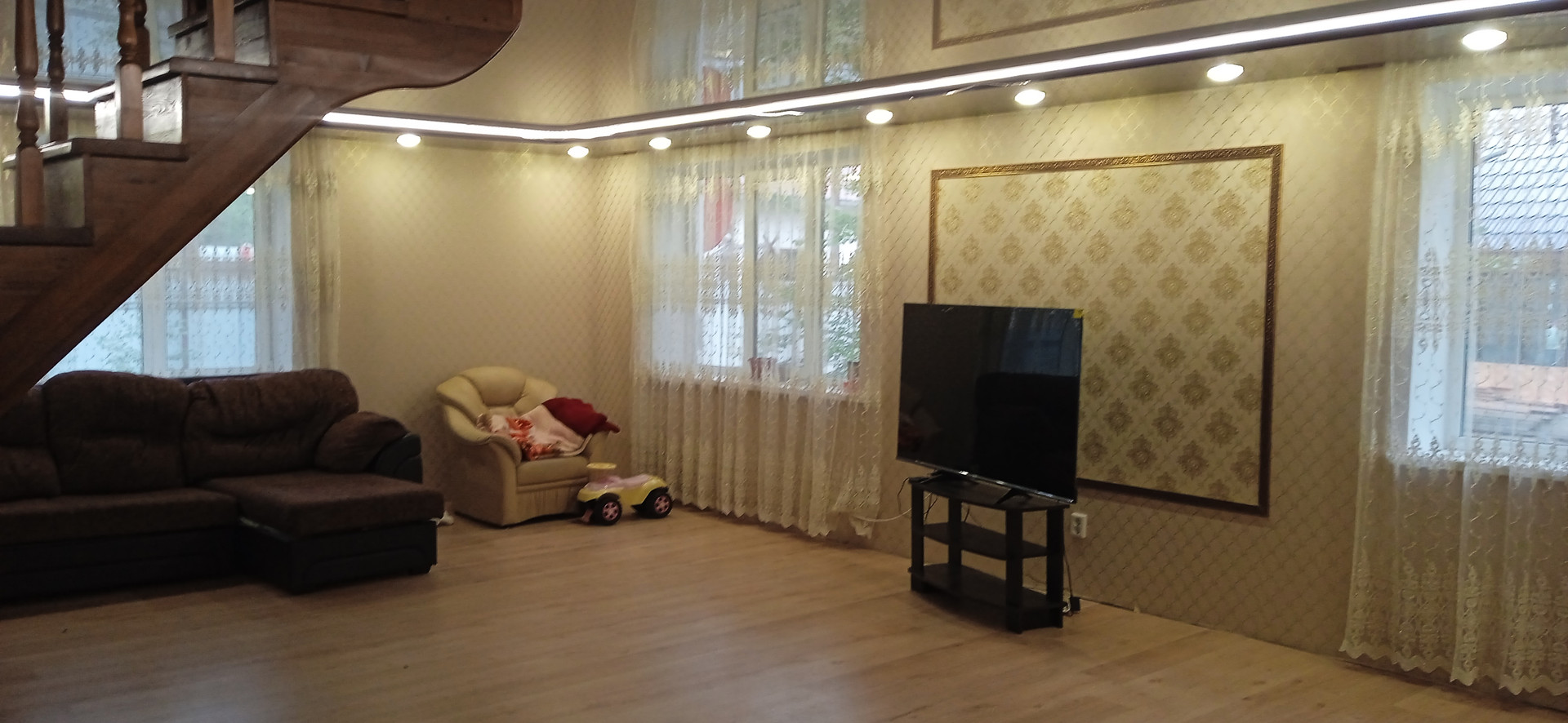 Дом строился основательно для семьи с ребятишками, пол первого этажа и перекрытие второго этажа из плит. Второй этаж из бруса 150х150.