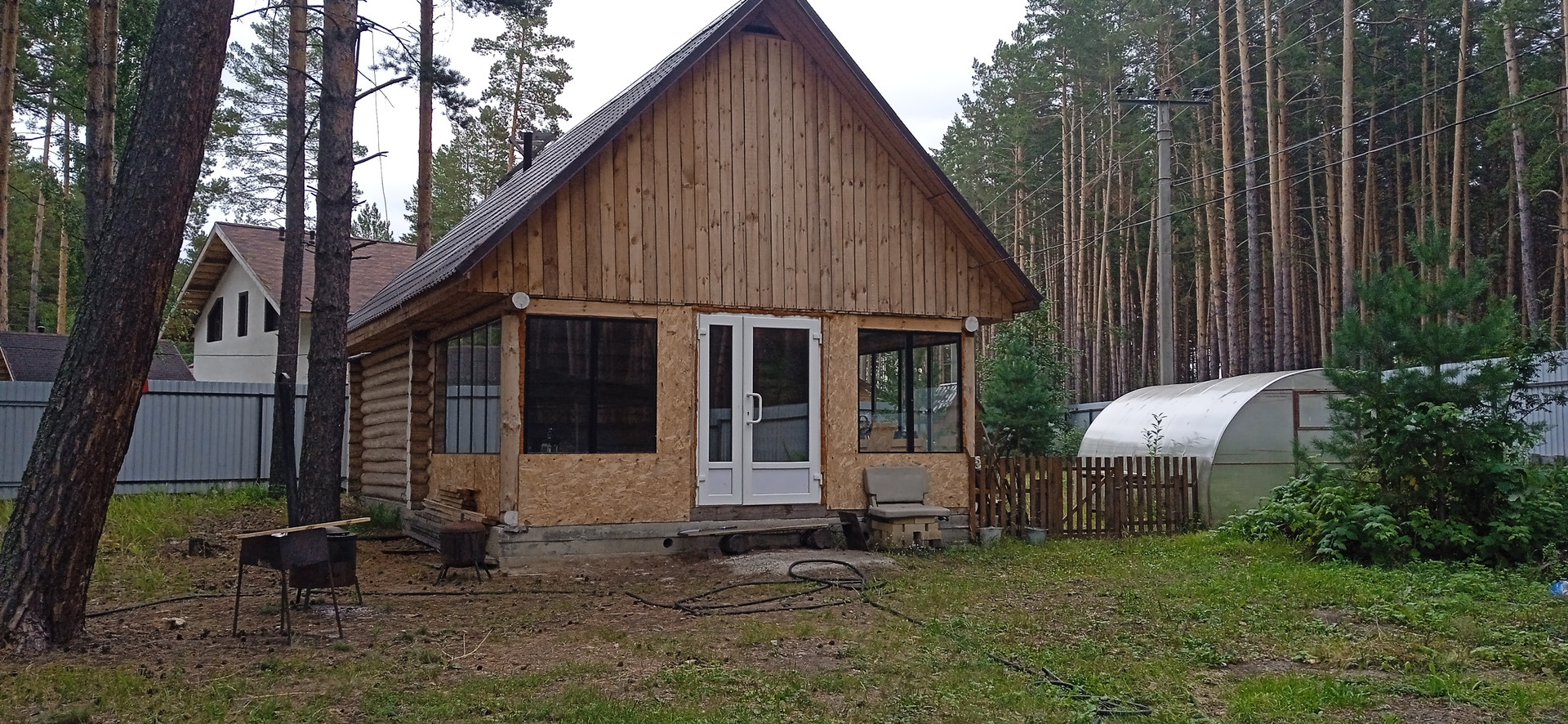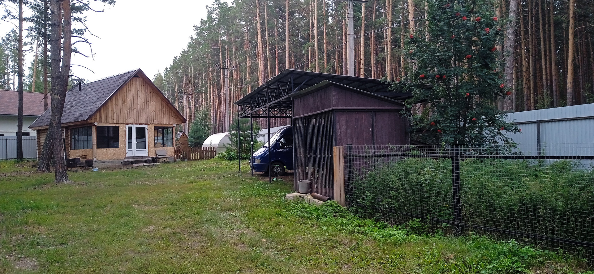 Участок 17 соток, огорожен профлистом, красивые кованные ворота с калиткой. На участке расположен дом 13,5х9,5 метров, новая баня из оцилиндрованного бревна 10х6 метров (парилка и мойка раздельные, есть комната отдыха и застекленная веранда). Навес под три машины, вольер для собаки с прогулочным двориком, теплиц 6х3 метров поликарбонат, а так же на участке стоят сосны, растут грибы и ягоды.