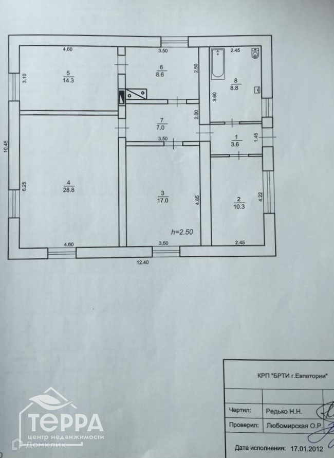 Жилая площадь 60.1 м2