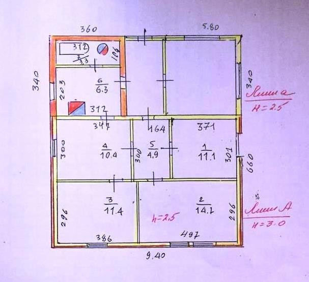 В доме 3 спальни - 11,1+15+11,4 кв.м., гостиная - 10,4 кв.м., кухня - 3,3 кв.м., коридор - 4,9 кв.м., с/у - 3,3 кв.м.