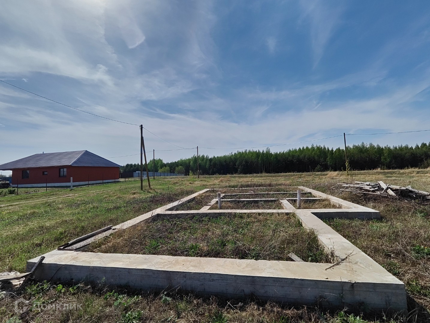 ПОСТРОЙКИ: на участке 5 соток установлен ленточный монолитный фундамент под жилой дом (8 м х 9,5 м) и гараж (6 м х4 м). Готовый хоз. блок.