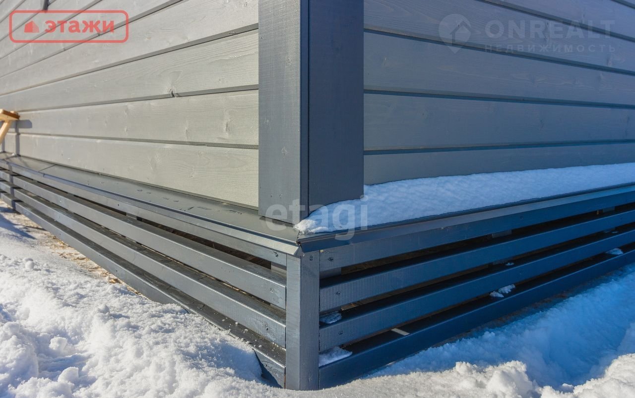 Отделка цоколя выполнена строганным бруском с покраской в цвет дома.