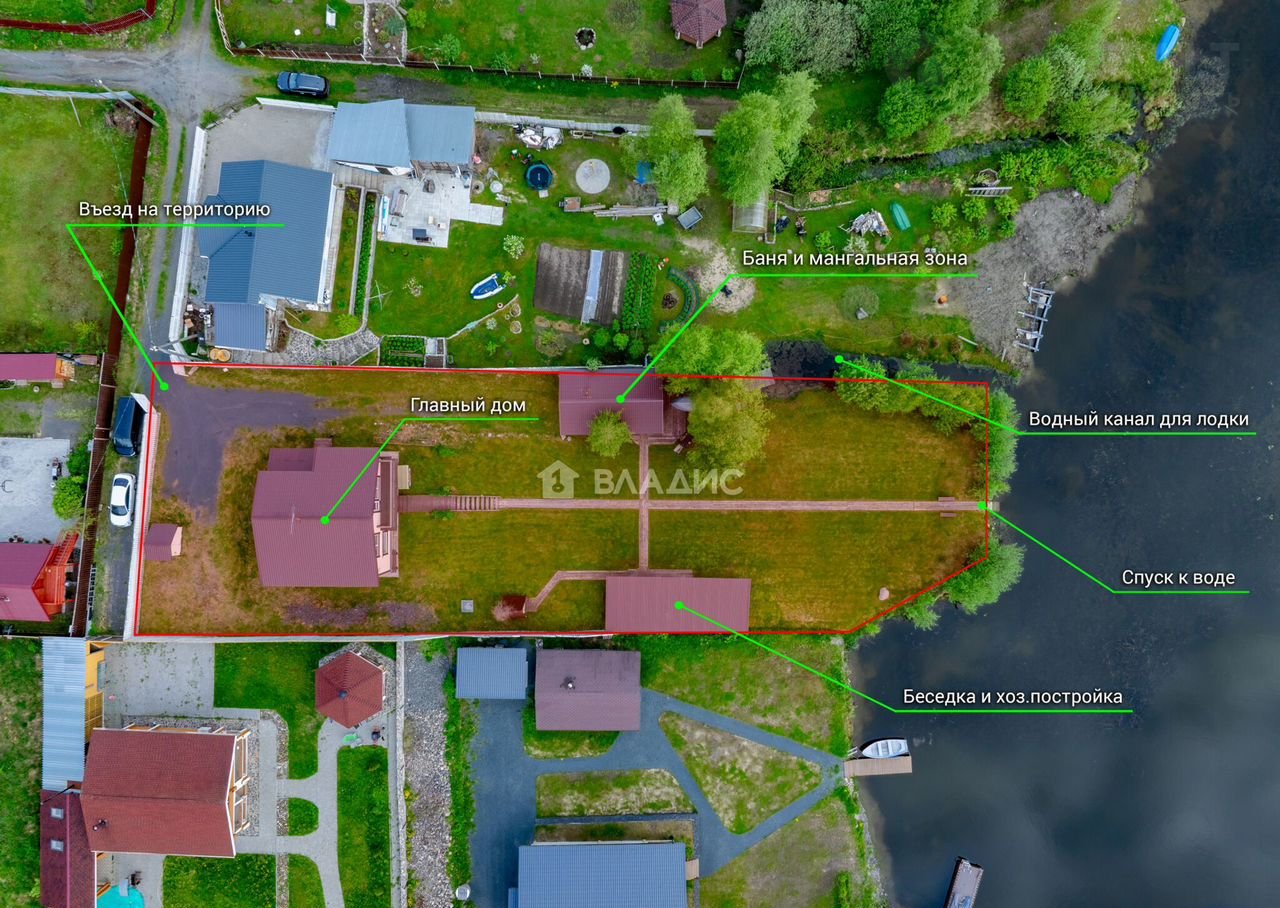 - Участок прямоугольный формы, благоустроен, с наклоном в сторону воды.